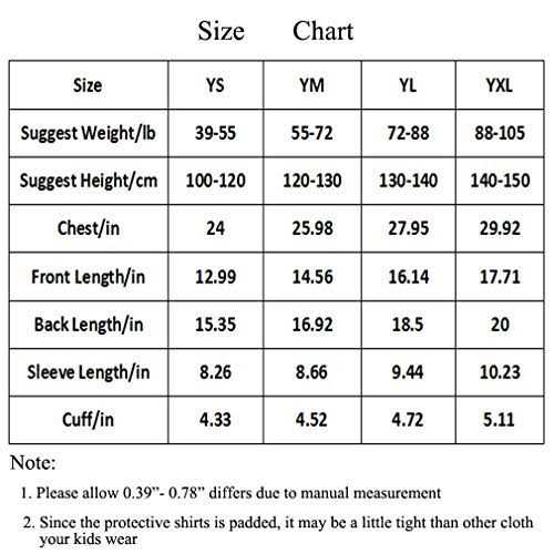 STONEKISS Kid’s Padded Shirts Short Sleeve Compression Chest and Rib Protector T Shirt Youth Protective Gear