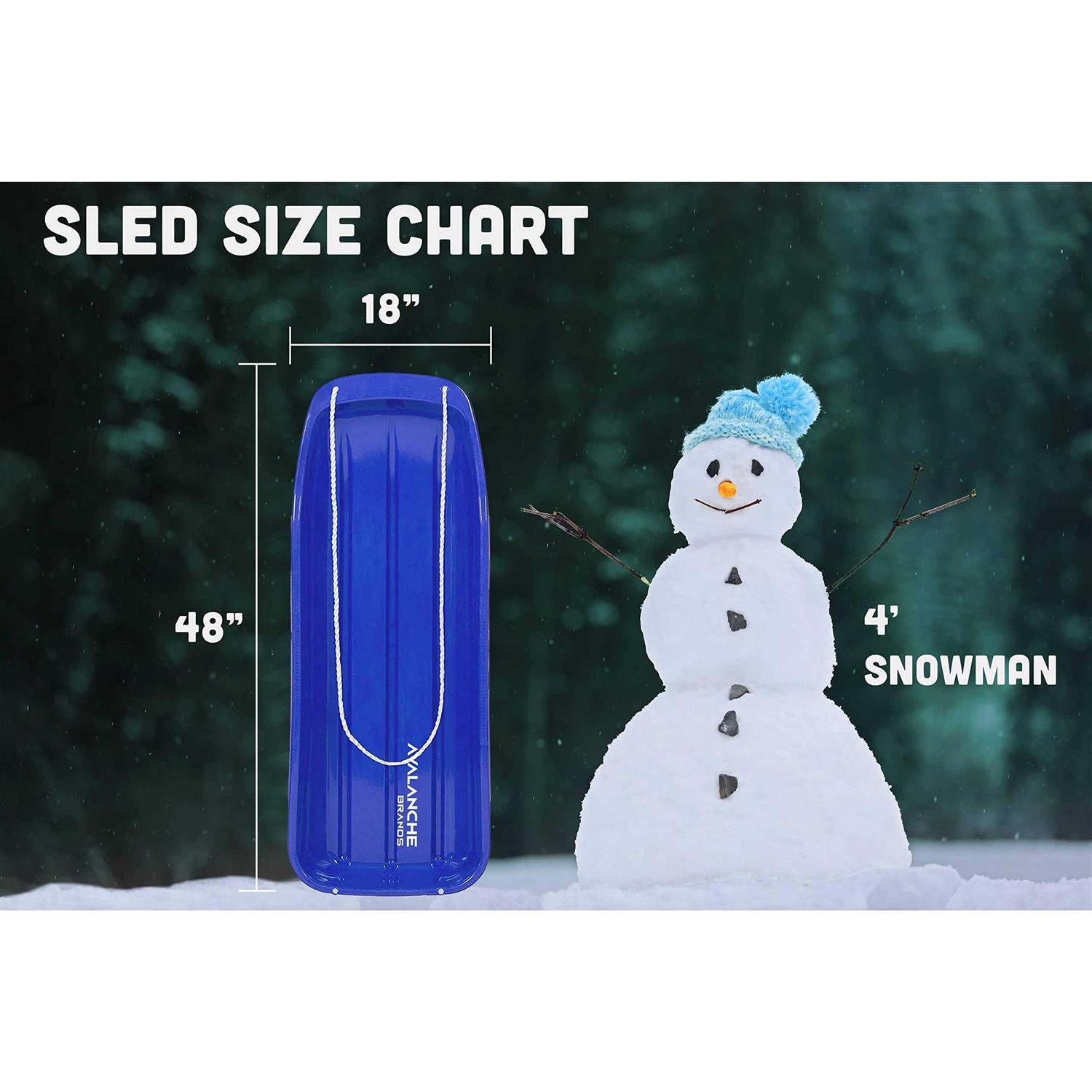 Avalanche Brands Classic Downhill Toboggan Snow Sled Includes Pull Rope and Handles Blue 48 inch Fit for 2 Rider