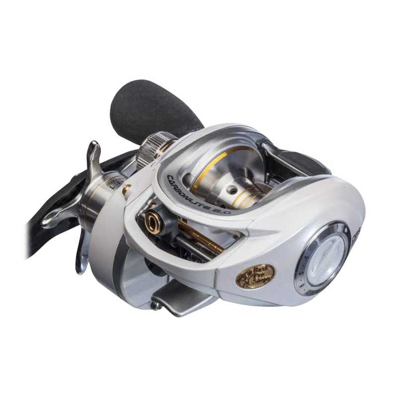 Welcome to the next level in carbon-rich baitcaster performance. Johnny Morris CarbonLite 2.0 Baitcasting Reel is stronger, smoother and significantly faster as in, up to 8.3:1 fast than its predecessor. The rigid one-piece aluminum frame connects super-strong carbon-fiber side covers, a flex-inhibiting combination that keeps the internals in alignment no matter how heavy the load. The double-anodized, machined-aluminum spool is V-grooved and ported with a friction-eliminating titanium nitride-coated line guide in place to ensure perfect line flow. The aluminum crankshaft and brass main gear complement a planetary drivetrain that delivers silky-smooth operation, aided by a premium 10-bearing system that includes double-shielded stainless steel ball bearings and Powerlock instant anti-reverse. Our time-tested Dual Braking System combines both centrifugal and magnetic braking for truly outstanding performance on every cast. The powerful six-disc carbon-fiber drag will slow the hardest-fighting bass. Smooth-turning carbon fiber recurve handle enhances your comfort with premium EVA grips. Color: aluminum.