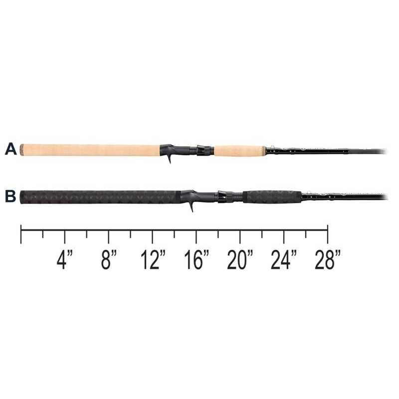 The Bass Pro Shops Predator Musky Casting Rod is built to take on the top of the food chain hard-fighting slashers like muskie and northern pike. With its fast-action RT3 Graphite blank, this powerful rod delivers equal measures of heavy-duty strength and castability. Double-foot, stainless steel Fuji guides with aluminum oxide rings yield long, smooth casts, yet they’re designed to hold up to constant use of braided line. The graphite reel seat locks your reel down for battle. All Predator Musky casting rods feature high-leverage extended cork grips, except the Trolling model, which sports rod holder-friendly X-Wrap EVA grips. Built to handle big, hard-fighting fish Fast-action RT3 Graphite blank Fuji stainless steel guides with aluminum oxide rings Graphite reel seat Cork grips on Casting models X-Wrap EVA grips on Trolling model
