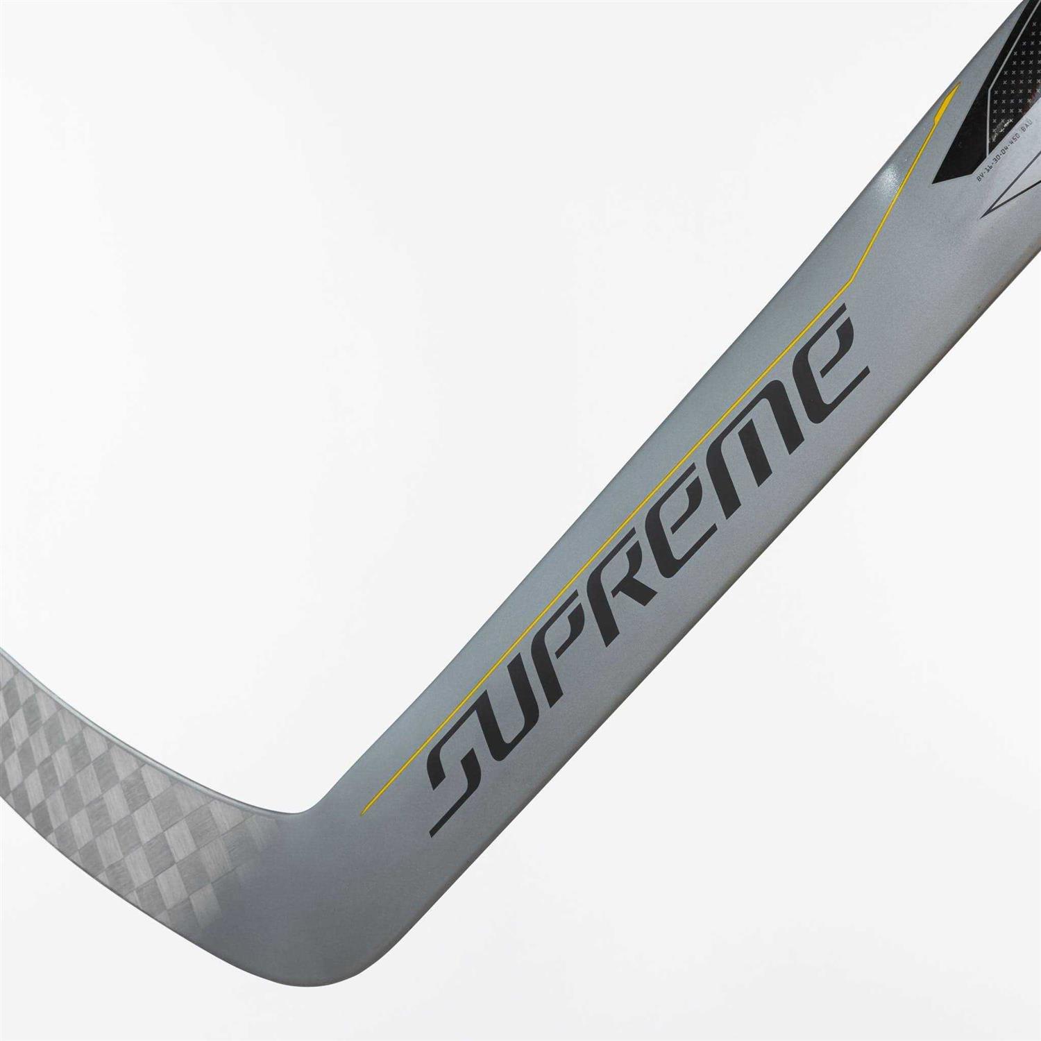The Bauer Supreme M5 Pro Goalie Stick Senior is designed with advanced technology to provide unmatched stability, coverage and control in net. The innovative construction allows for a balanced feel, and a unique Ergo Geometry delivers an increased connection in the paddle and blade. Control The unique ERGO-Paddle geometry shape gives the goalie more control against the body and when deflecting pucks. Durability New AEROFOAM Bridge Core gives it a lightweight paddle construction with durability improvements over the predecessor 3S Pro. Balance Textreme construction in the blade provides for an incredibly balanced feel.