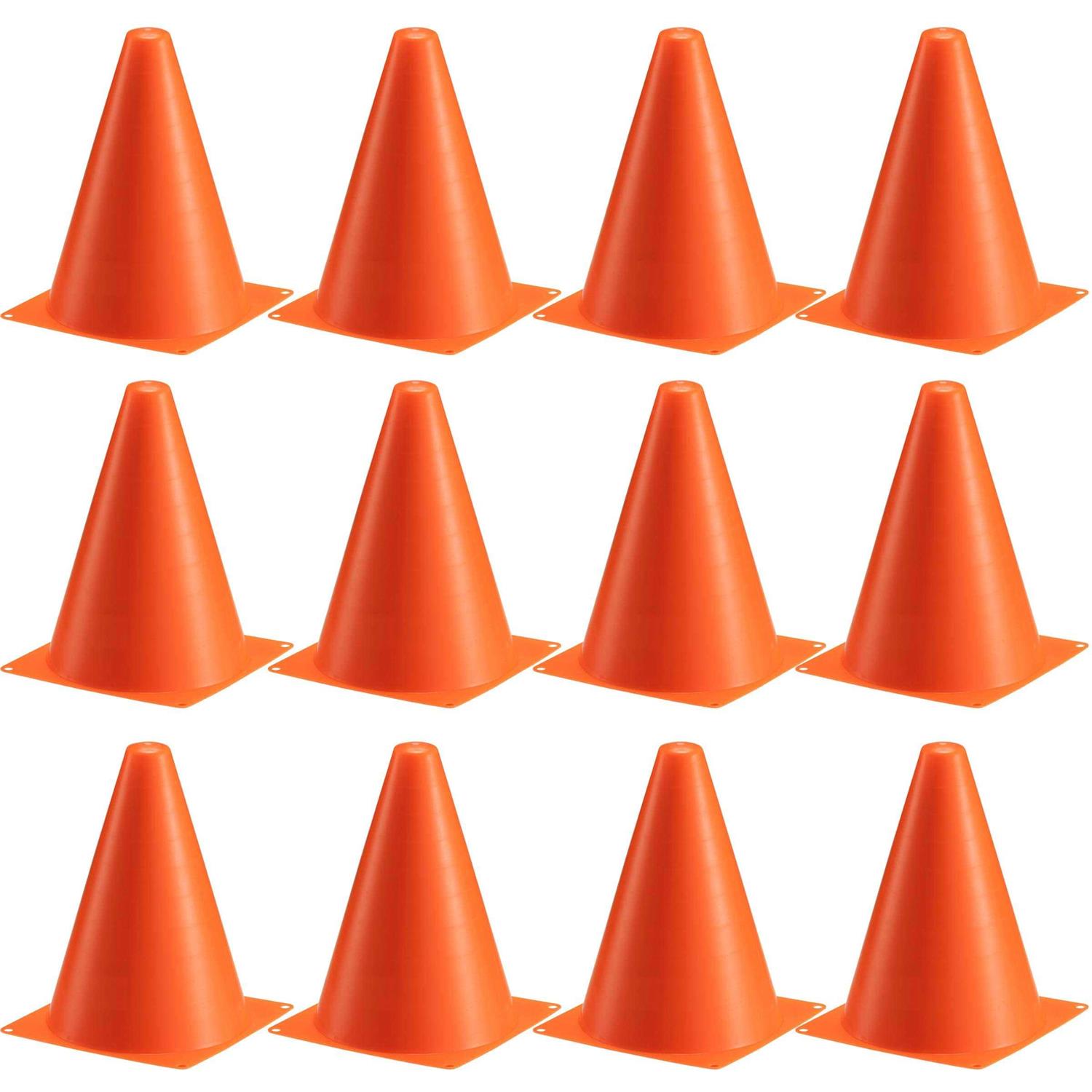 Bedwina Traffic Cones and Racing Checkered Flags – (24 Pcs) 12 – Black and White Flags On Sticks and 12-7-Inch Mini Orange Sports Safety