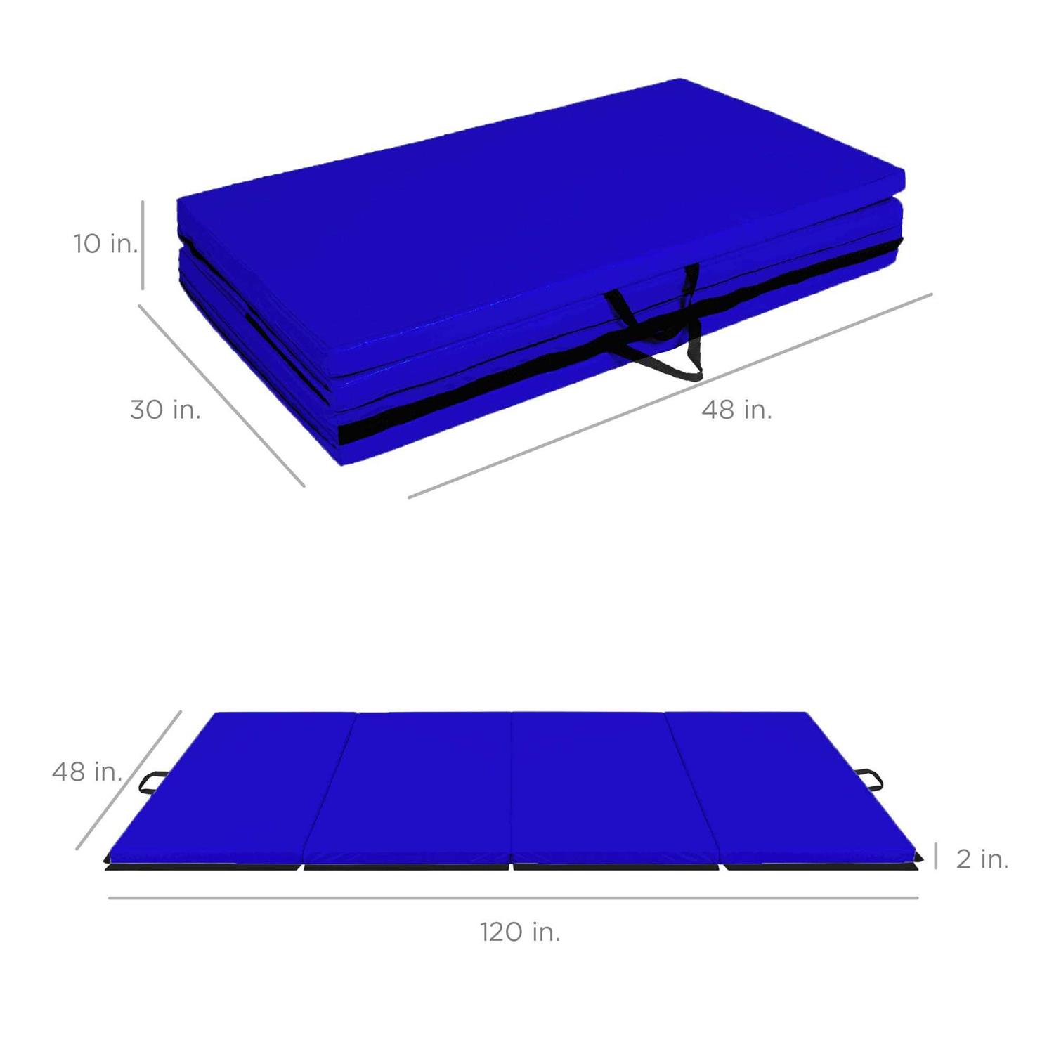 Best Choice Products 10ftx4ftx2in Folding Gymnastics Mat 4-Panel Exercise Workout Floor Mats w/ Handles – Royal Blue