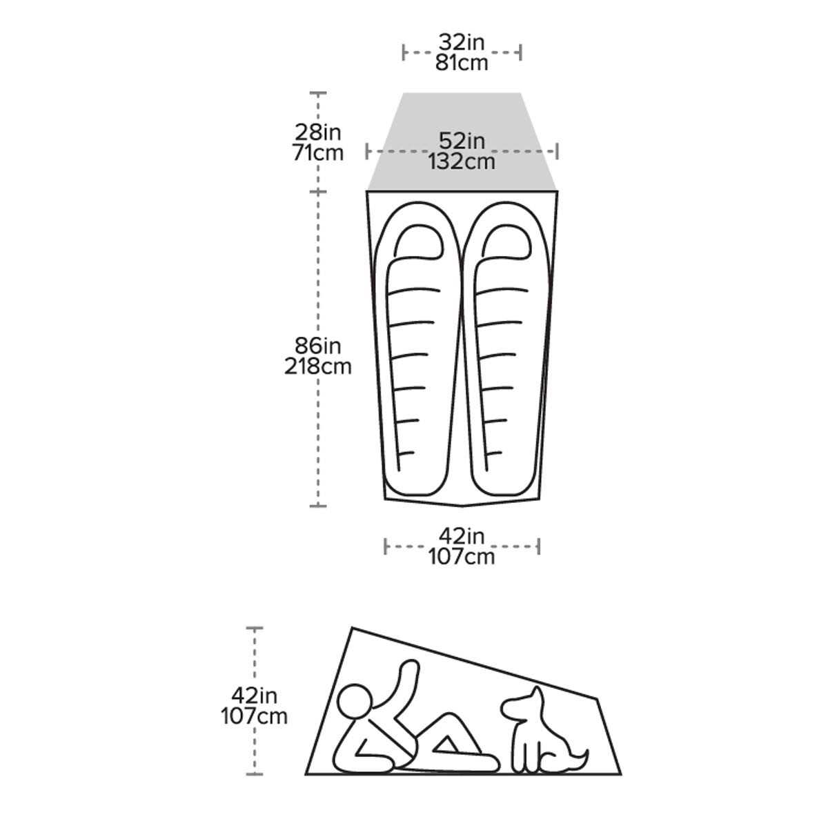 Big Agnes Fly Creek HV UL2 2-person tent grey – If you’re in the market for a lightweight 2-man tent for fastpacking and bikepacking, then look no further than the Fly Creek HV UL2 from Big Agnes! The ultra-light tent is also a great option if you’re going on a trek or a bike tour since it can be compactly stowed away in the included stuff sack.Featuring three inner mesh pockets in the inner tent, you’ll have enough storage space to stow away your essentials. The DAC Featherlite NFL poles are made of particularly lightweight aluminium, and the various parts can be quickly and easily assembled thanks to the colour coding system. Featuring a silicone coating, a PU-coating and a DWR finish on both the floor and the flysheet, the tent is guaranteed to be waterproof. For additional protection, it’s equipped with taped seams, and both the floor and the flysheet have a hydrostatic head of 1200 mm. Another great feature includes the reflective guy lines that provide enhanced safety when walking in the dark. In addition, the freestanding tent has an entrance and a vestibule where you can stow away your shoes and backpacks. Plus, the inner tent is made of a breathable mesh fabric that allows the air to circulate inside, and it ensures that moisture is reliably wicked away to the outside.Both the tent’s light weight and small pack size make it ideal for backpacking. Plus, you can attach a lamp or a clothesline to dry your clothes to the several loops in the inner tent. Thanks to the 11 Dirt Dagger UL lightweight aluminium pegs, the Fly Creek HV UL2 2-man tent from Big Agnes can be securely pegged to the ground in any weather.