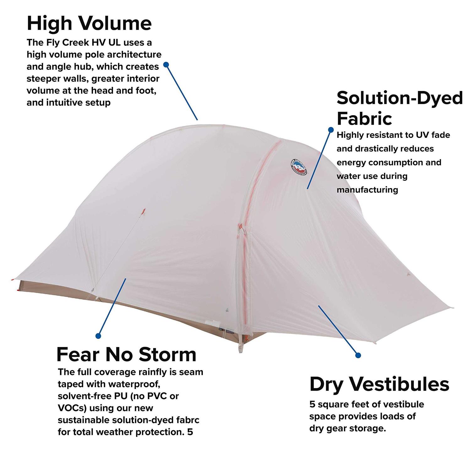 - The FLY CREEK HV UL 2 tent by Big Agnes is designed for hikers looking for a lightweight, compact and high performance 3-season tent.