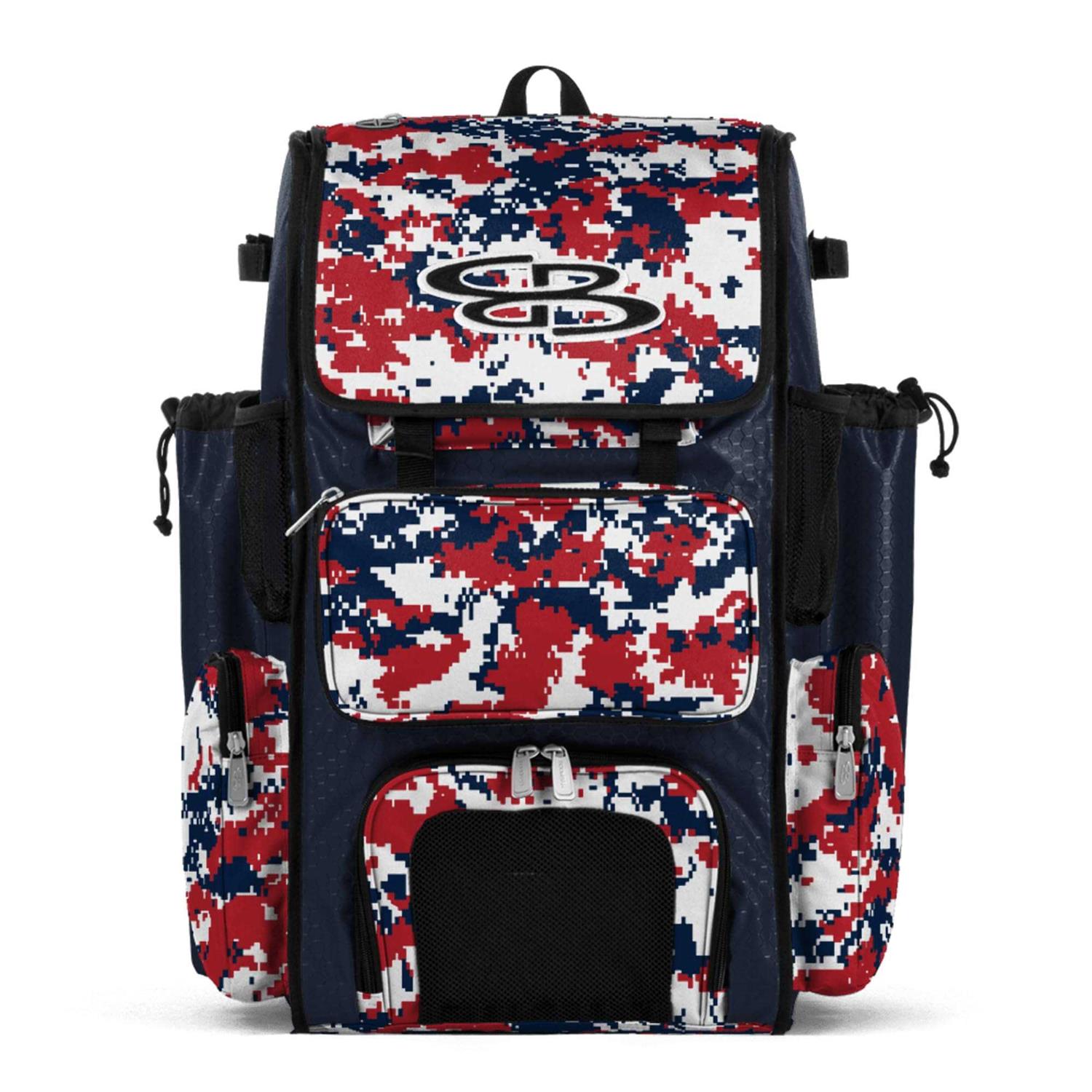 Boombah SuperPack Bat Pack Backpack Version (no Wheels) Holds 4 Bats Camo Navy/Red for Baseball or Softball