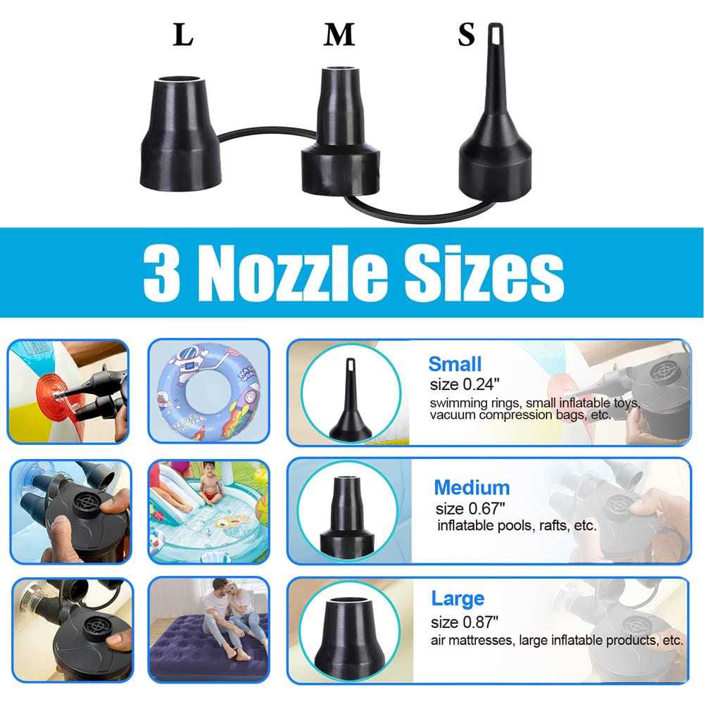 BrilliantHouse Electric Air Pump Portable Quick-Fill Air Mattress Pumps for Inflatable Cushions with 3 Nozzles