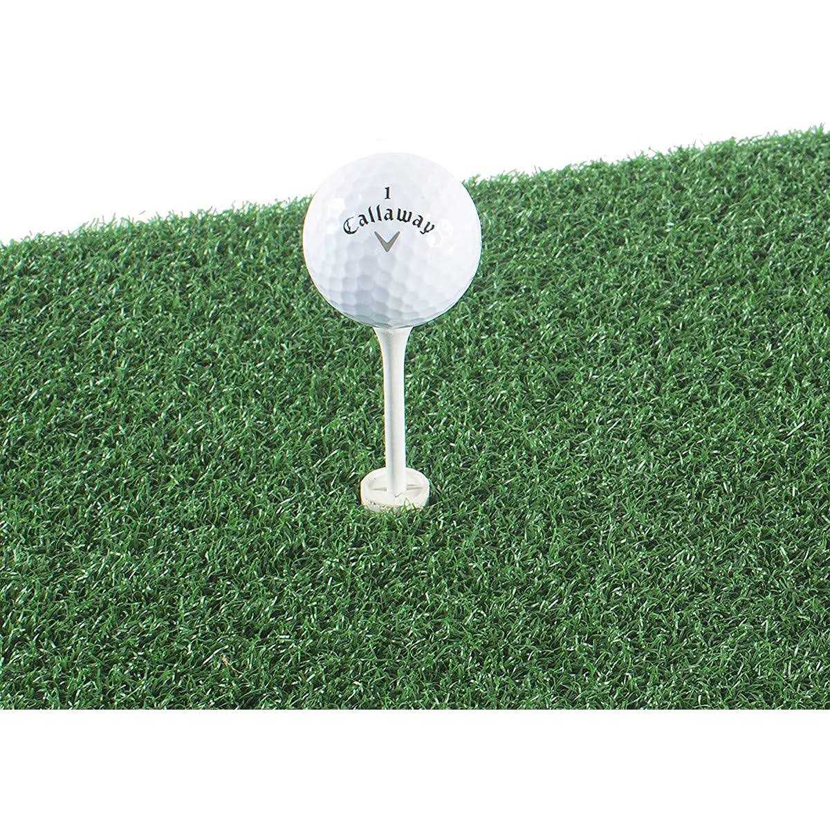 Well weve gotthe ultimate training tool for you! The Callaway FT Launch Zone Hitting GolfMat is what youve been searching for, with its tru-turf surface thatsimulates hitting from a real fairway or tee box, your game is guaranteed toimprove. Its material makes it highly resistant to wear and tear like othergolf mats. The ultra-durable, heavy rubber backing minimizes sliding at impactand helps soften the strike to better protect your hands, wrists and clubsfrom scratches and damage. The heavier weight of this Callaway golf matminimizes slide on impact. The Callaway FT Launch Mat offers greater shockabsorption and club protection. Get the same golf course feel right in yourown backyard; you wont be able to tell the difference! Includes a patentedtee holder that holds any tee – can be removed for inserting a fixed heightrubber tee (not included, sold separately). Plus, its available in two sizes.Get yours in 8 x 6 or 1 x 2.