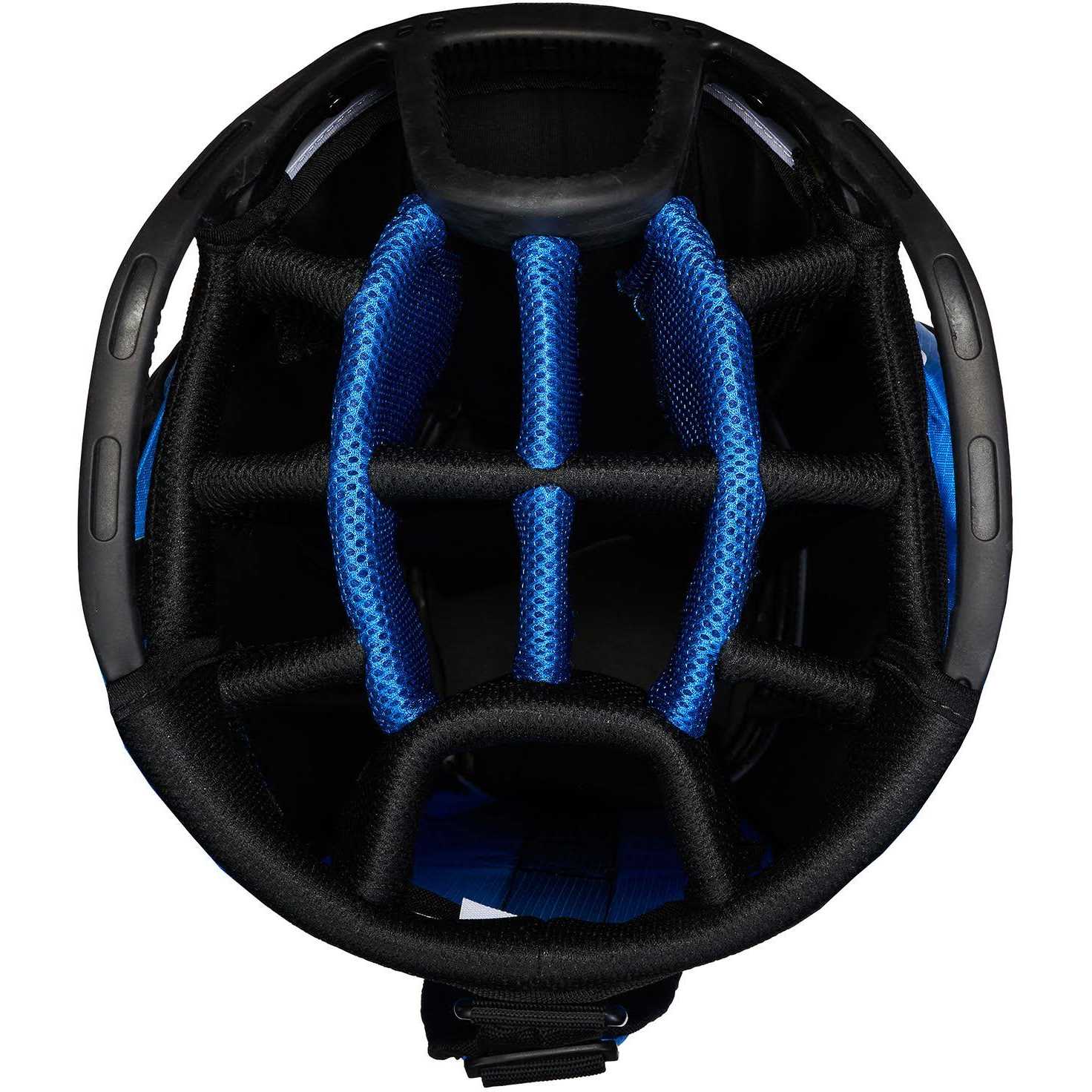 FEATURES: TOP: 14-Way Arched top with a dedicated putter well and 3 full-length dividers 7 front-facing storage options, including: Velour lined valuables pocket 2 large apparel pockets Lightweight and durable ripstop fabric Cart strap pass-thru Includes rain hood Weight: 4.3 lbs.
