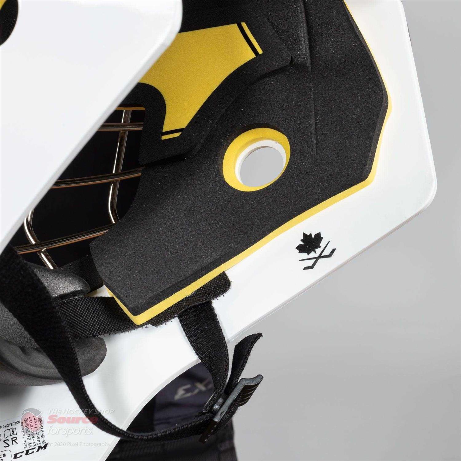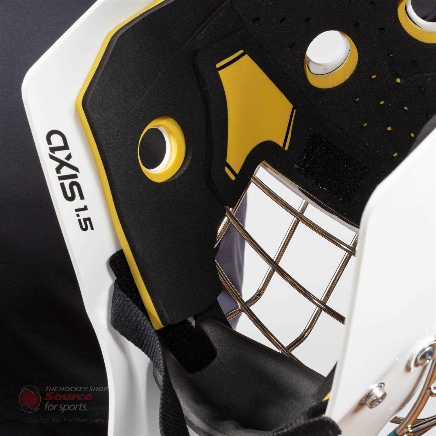 The CCM Axis A1.5 Goal mask is an NHL inspired shell which includes improvements to increase vision, in the liner and with a lighter shell. The shell of the mask is constructed of a polycarbonate base to provide a protective shell, while staying incredibly light. Inside the shell, there is a VN liner to provide a comfortable foam system giving the goalie the best comfort and protection throughout usage.
