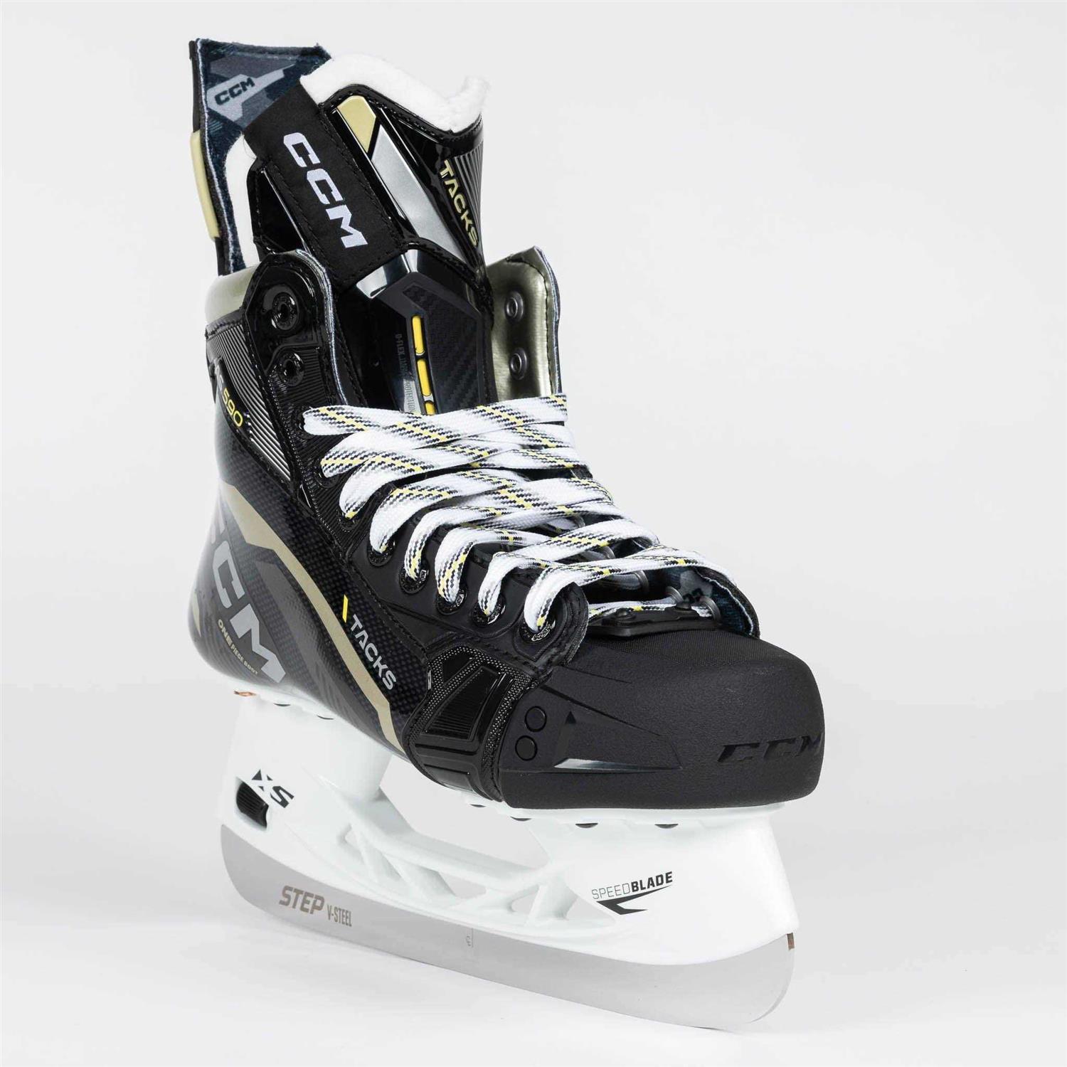 With our highly advanced one-piece boot, Powerflex tendon and NHL-caliber lightweight composite material, the TACKS AS 590 ice skates bring your skating skills to their peak. These boots give you a closer fit, improved range of motion and more direct energy transfer for fuller strides and supercharged power. Take your place as an elite player.