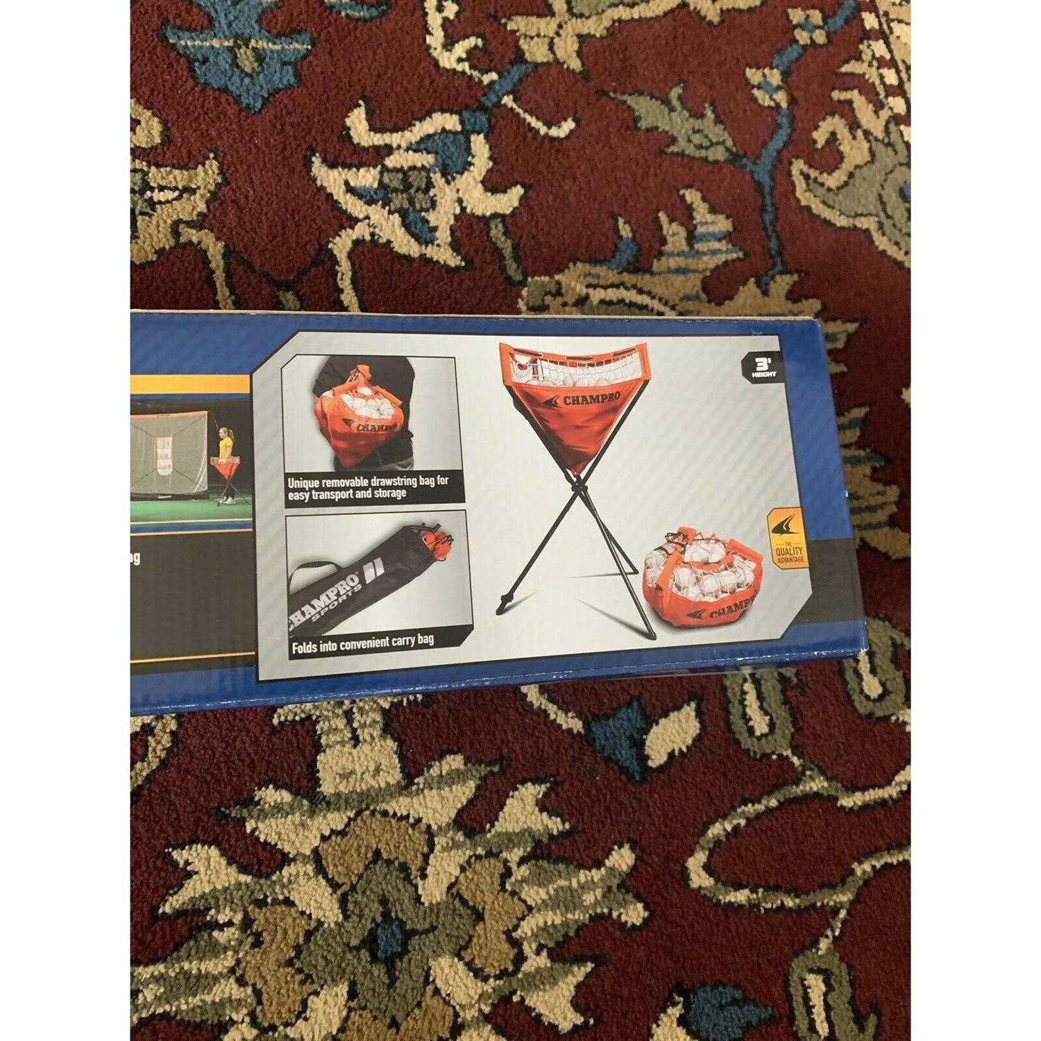 The CHAMPRO Ball Caddy simplifies both setup and cleanup for batting practice. Its 2-in-1 design combines a tripod with a removable drawstring storage bag, creating a caddy that holds balls for hitting drills and allows you to easily transport them afterward just by pulling the bag off the stand. A sturdy tripod base formed of shock-corded steel poles provides stability wherever you set up. The caddy assembles and collapses in minutes, so you can spend more time on practice. Just slide the nets corners onto the base poles, and its ready to go. Holds up to 60 baseballs or 30 softballs while carrying. While standing, it holds twice as much–up to 120 baseballs or 60 softballs. Comes with a convenient carry bag to easily transport the caddy to and from practice, whether its on the diamond or at the batting cages.