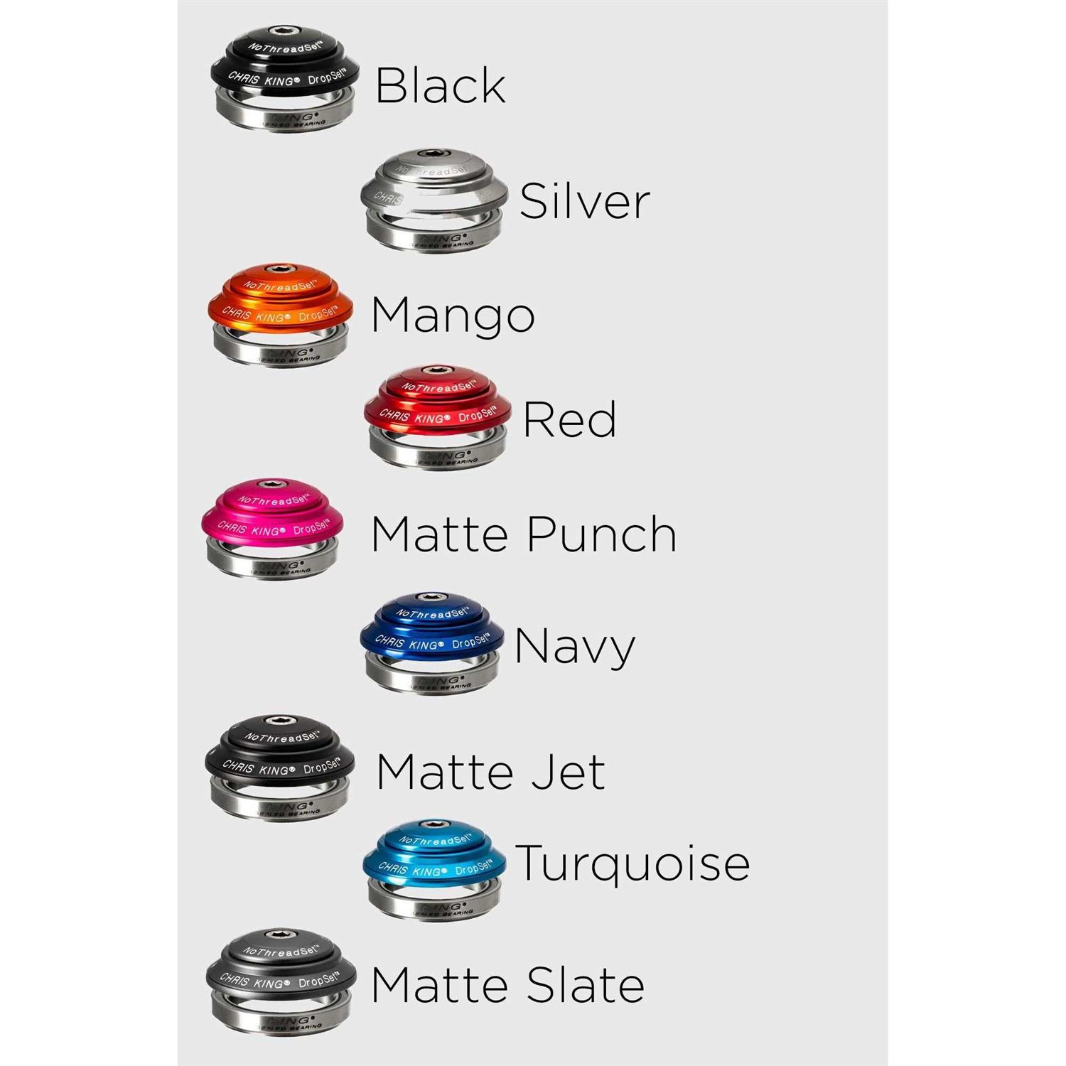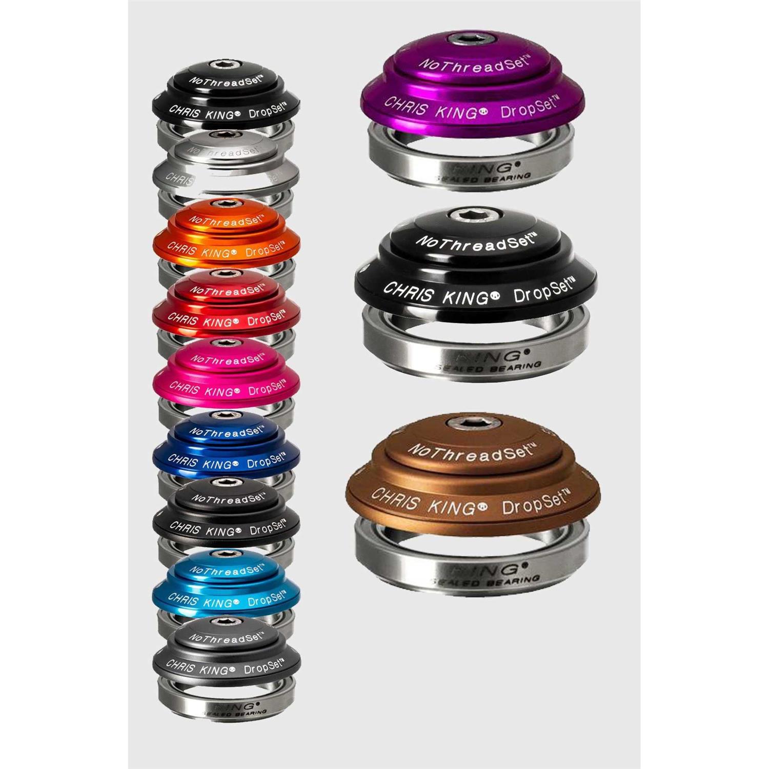 Chris King DropSet 3 Headset with Steel Bearings Chris King’s DropSet 3 Headset with Steel Bearings is an integrated headset option of the highest quality. The precision-made steel bearings and races have been designed to be more than a match for the extra demands placed upon them by their integrated position, as the lack of supporting cup means that it is easier for the bearings to shift and pre-load be lost, which in turn can lead to premature wear and creaking. The GripLock retention system overcomes this, retaining preload even under heavy disc braking and big hits.