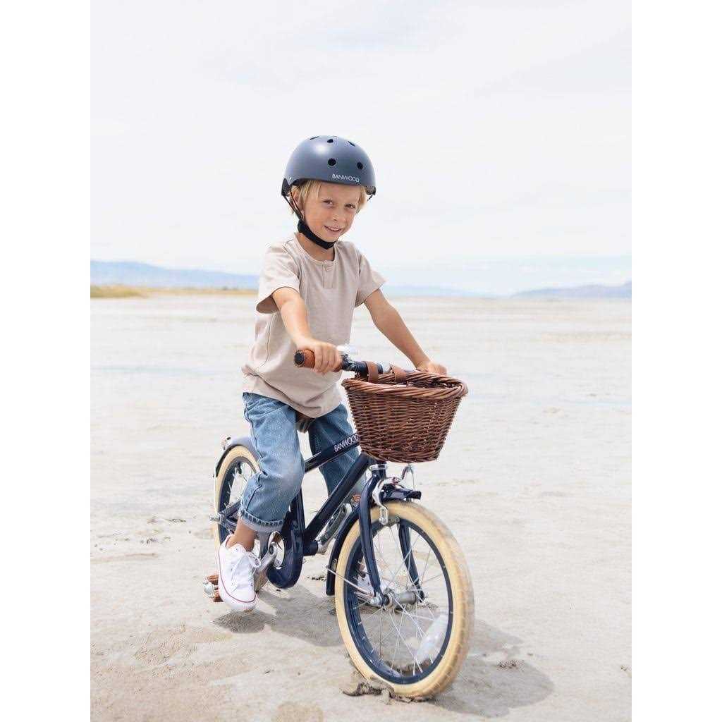 Getting your first peddle bike is a milestone in your little ones life – and they will be the envy of the park on our Banwood Classic Bike, inspired by vintage adult bicycles and influenced by Scandinavian design.All the classic bikes feature a lightweight alloy frame in a host of colours. They will be the coolest kid on the block with Banwood’s brown faux leather saddle, retro-inspired rubber grips in matching colours, a unique rosewood vintage pedal, 16” tires, and a detachable rattan basket. Perfect for packing in all the essentials—lunch, water bottle, and favourite toy— so they are ready to take on the world. The Classic also comes with a kickstand, training wheels, security wheel brakes, adjustable handlebar and saddle, bell, wheel reflectors, back reflectors, and single-speed gears.
