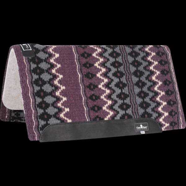 This wool top pad features a top layer that is heavy, custom weave 100% wool blanket which is long lasting, durable and good looking. 3/4-inch orthopedic grade felt bottom soaks up moisture, allowing heat to dissipate away from the horse s back. Oil tan wear leathers. Conforms to the horse s back while maintaining density. Convenient one-pad system perfect for all disciplines. 32 x 34 x 3/4 .