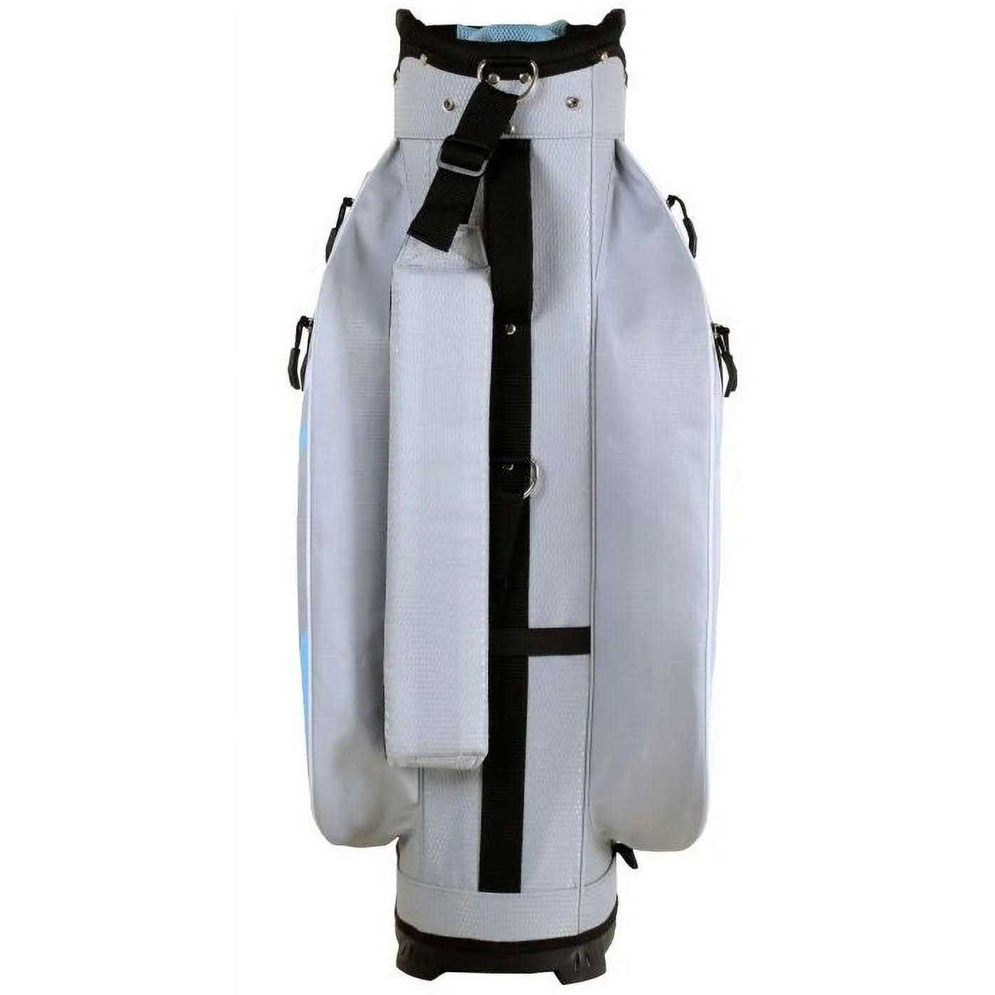It features a 9.5-inch top with a 14-way divider for organised clubs and two handles for easy loading. The velour-lined valuables pocket and scorecard, golf ball and glove pockets keep your essentials close at hand. With an insulated cooler bag, eight pockets and hidden umbrella storage, the Cleveland Friday Cart is practical and versatile. The towel carabiner and removable pocket provide customisation options. Made of polyester, with a weight of only 2.5 kg, this golf bag is both durable and portable for an optimal playing experience.