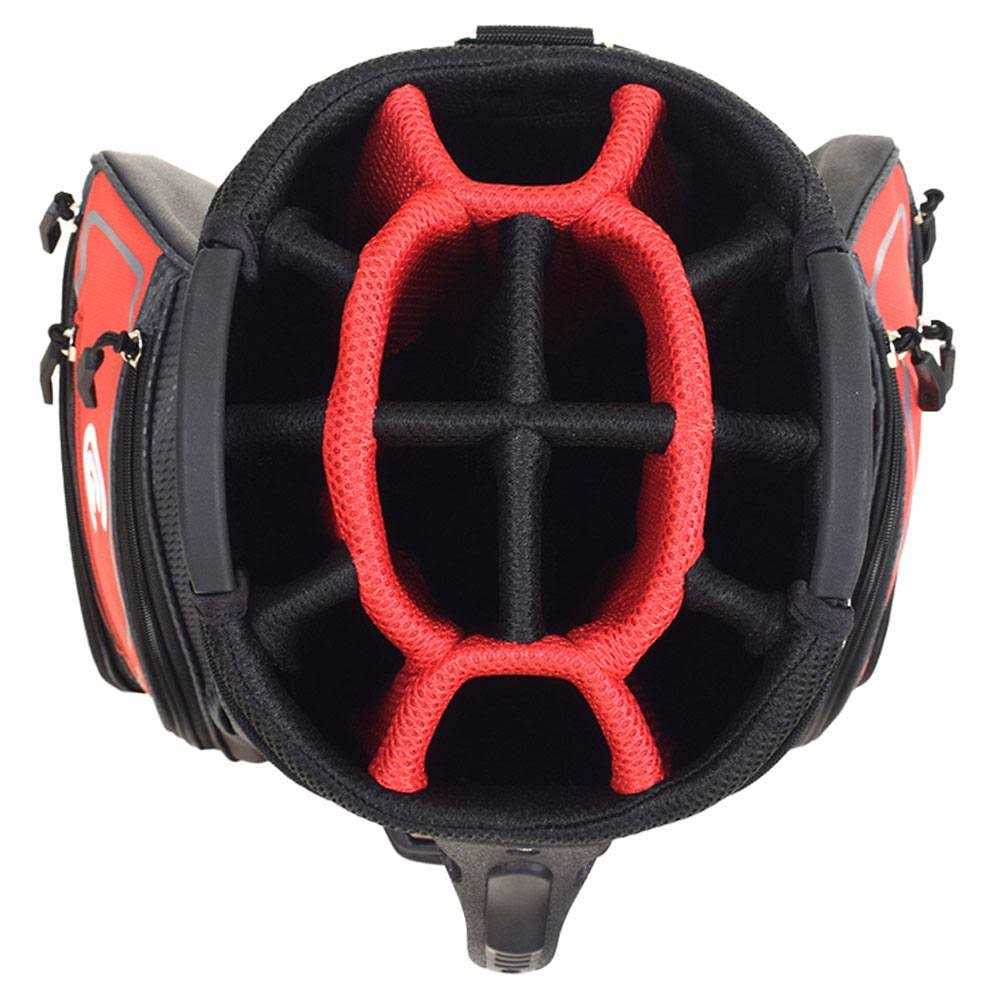 It features a 9.5-inch top with a 14-way divider for organised clubs and two handles for easy loading. The velour-lined valuables pocket and scorecard, golf ball and glove pockets keep your essentials close at hand. With an insulated cooler bag, eight pockets and hidden umbrella storage, the Cleveland Friday Cart is practical and versatile. The towel carabiner and removable pocket provide customisation options. Made of polyester, with a weight of only 2.5 kg, this golf bag is both durable and portable for an optimal playing experience.