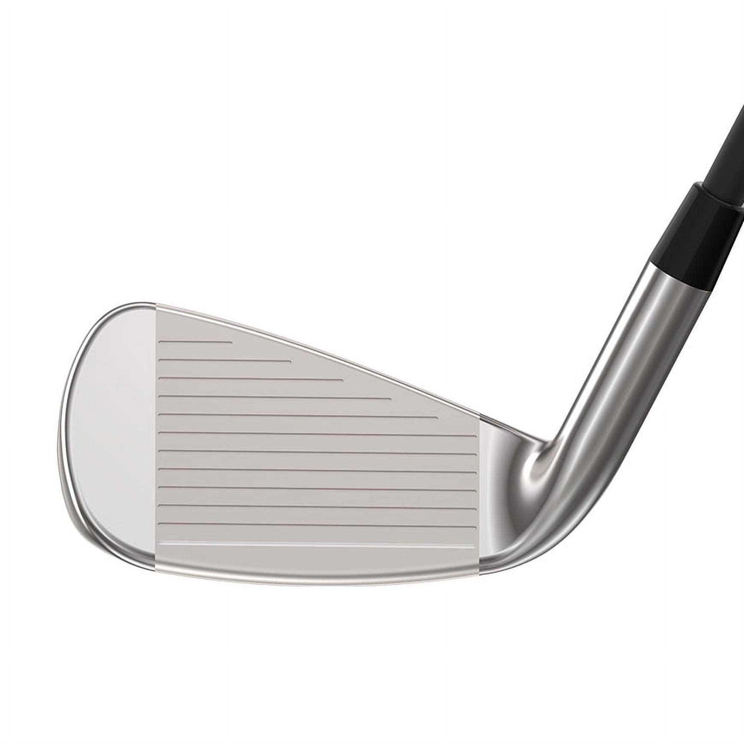 They’re huge. They’re hollow. They’re the all-new Launcher XL Halo Irons. This is bona fide hybrid performance in every iron. Cleveland’s unique Action Mass CB makes them easier to hit. This is huge: a bigger head means an MOI of 2,908 g*cm2 in the 7 iron—their most ever in a Cleveland Golf hybrid-iron. It’s maximum distance with maximum fun. Gliderail in the long irons gradually transitions to a v-shaped sole in the short irons and ultimately a 3-tiered sole on the Dual and Sand Wedges. Designed using artificial intelligence, Mainframe variable face technology increases ball speed while unique weight pad designs ensure maximum forgiveness across the face. Mass action CB has an 8g brass and rubber weight placed inside the end of the grip delivers better balance for more control without extra effort. 4i-7i lofts have wider, flatter grooves. 8i-SW lofts have closely-spaced, deeper, and higher spinning wedge grooves.