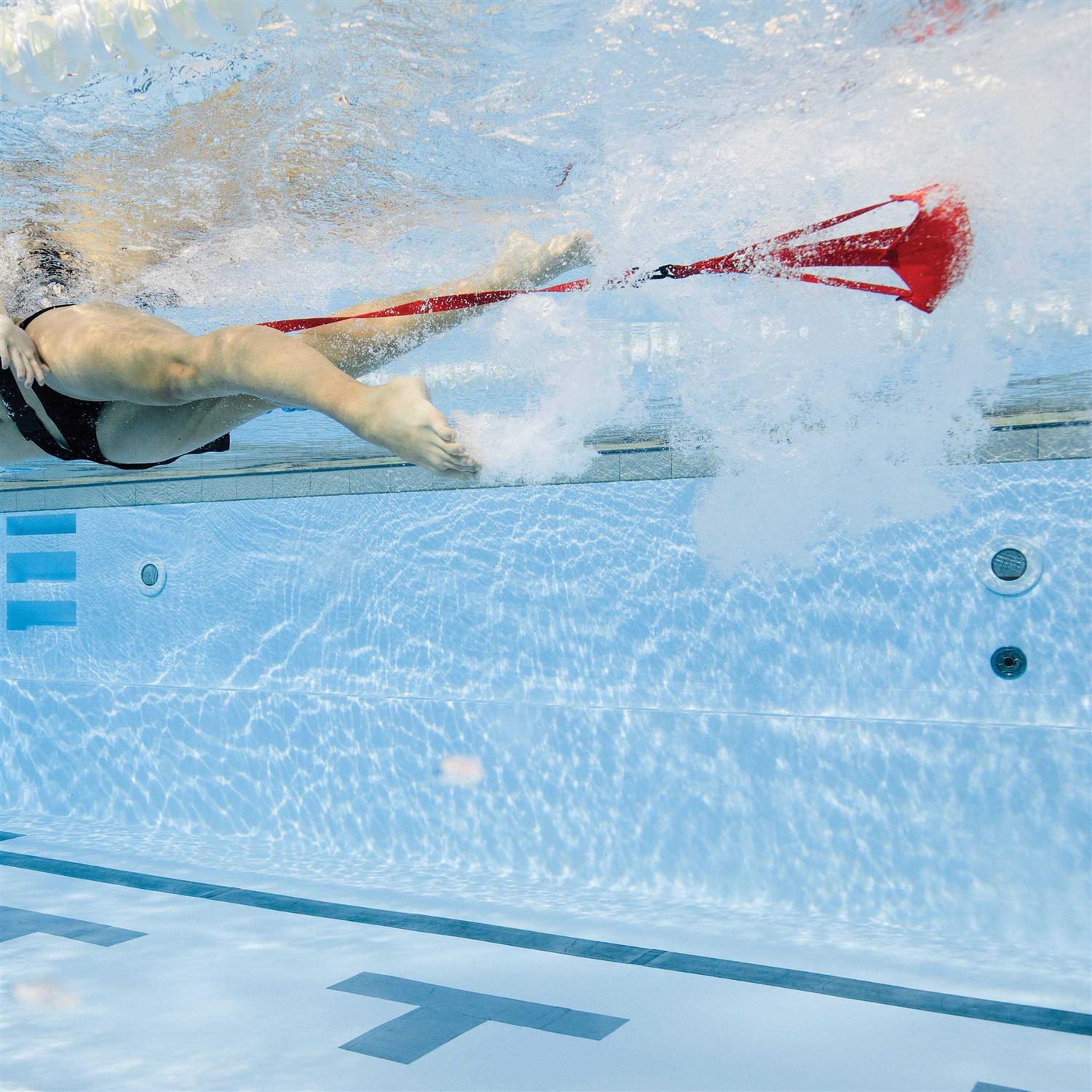 The swim parachute is made up of a comfortable adjustable nylon belt which is connected to a durable parachute. with two resistance sizes 8 inches in diameter and navy 12 inches in diameter the swim parachute provides varying levels of resistance for everyday training. resistance training is proven to build muscle increase endurance and boost speeds where the results can be felt immediately after the parachute is removed. the swim parachute is versatile compatible with all strokes and non-intrusive as it does not get in the way of kicking or flip turns.