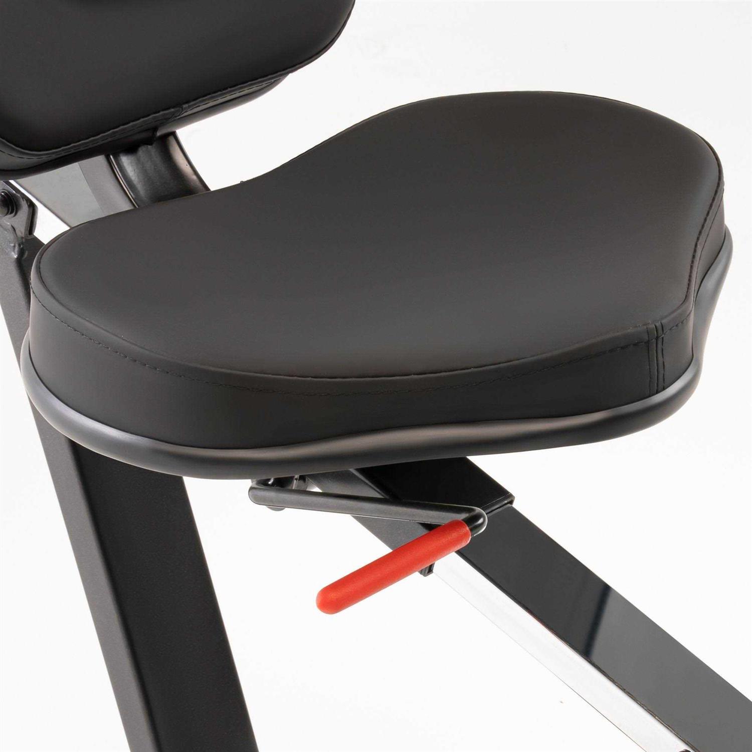 The Marcy Pro Recumbent Bike includes handle bars which move back and forth much like an elliptical. Using the arm exercisers while pedaling will help you burn as many calories as possible during your ride! The recumbent bike seat is adjustable to best fit the users needs. The sliding track to adjust the seat is chrome to make adjusting the seat as easy and smooth as possible. Make progress by tracking your progress with the included LCD Display. The LCD Computer displays time speed distance calories and odometer total distance. The Marcy Pro Recumbent Bike comes with a high density foam padded seat and back pad. This extra comfort allows you to stay comfortable even on long bike rides. Keep your favorite drink at arms length during your workout using the convenient water bottle holder located below the LCD monitor.