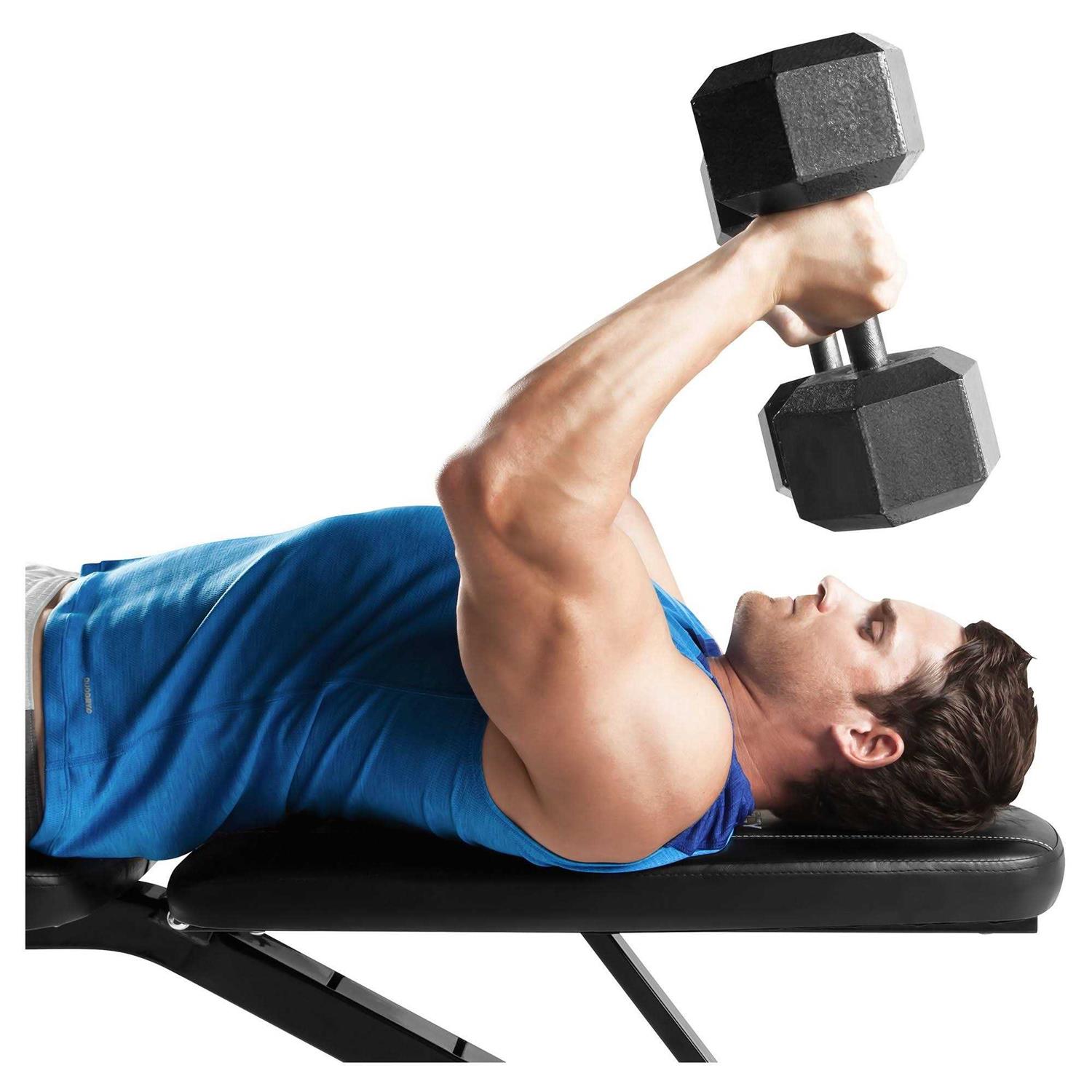 - Use the declined position to add extra intensity to your Sit-Ups.,Flat Bench Exercises/One-Arm Dumbbell Row.
