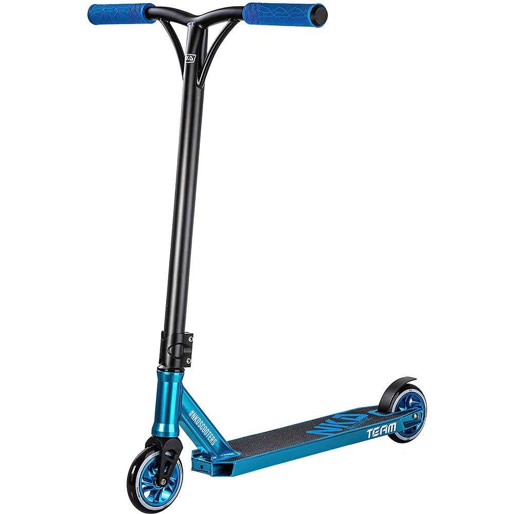 Product information: NKD Team scooter is recommended for children and young people aged 5-14 years. This stunt scooter is intended for beginners and intermediate riders. The kick scooter can be used in skate parks and on the streets near your house. It is good for street tricks and stunts and works well for transportation. The NKD Team scooter is built by team riders, for future team riders! Become part of a family that develops abilities and pushes boundaries. With the NKD Team scooter, you quickly progress from beginner to advanced. Every single part of this scooter is carefully selected to create a scooter that is easy to ride and fit for progressive riders. NKD Team is made from a strong aluminum deck, constructed with rails that stabilize your grinds, as well as flat sides so you can make finger whips. The deck is completed with integrated headsets, on which the popular HIC compression system ensures that the front fork and bar spins perfectly. The bar is held in place by a solid oversized clamp with weight-saving cutouts. The gussets reinforce the bar upwards so that hard landings do not wear on the bar. The bar is topped off with super soft NKD Shadow grips. The team behind NKD has assembled a scooter with parts that are normally only found on PRO scooters – and it does not stop here. A strong front fork with weight-saving cutouts keeps 110mm wheels and ABEC-7 ball bearings securely placed on the complete scooter. Welcome to the team! With the team scooter from NKD you can expect a stable progression of your abilities, and more importantly a progression of your personality. NKD Team is a CE-approved scooter. Features: Beginner / intermediate HIC compression Reinforced bars NKD Shadow grips – marked. The manufacturer guarantees a high standard! CE marking is a guarantee of the manufacturer that the product meets safety and environmental protection standards for products sold within the European Economic Area (EEA).