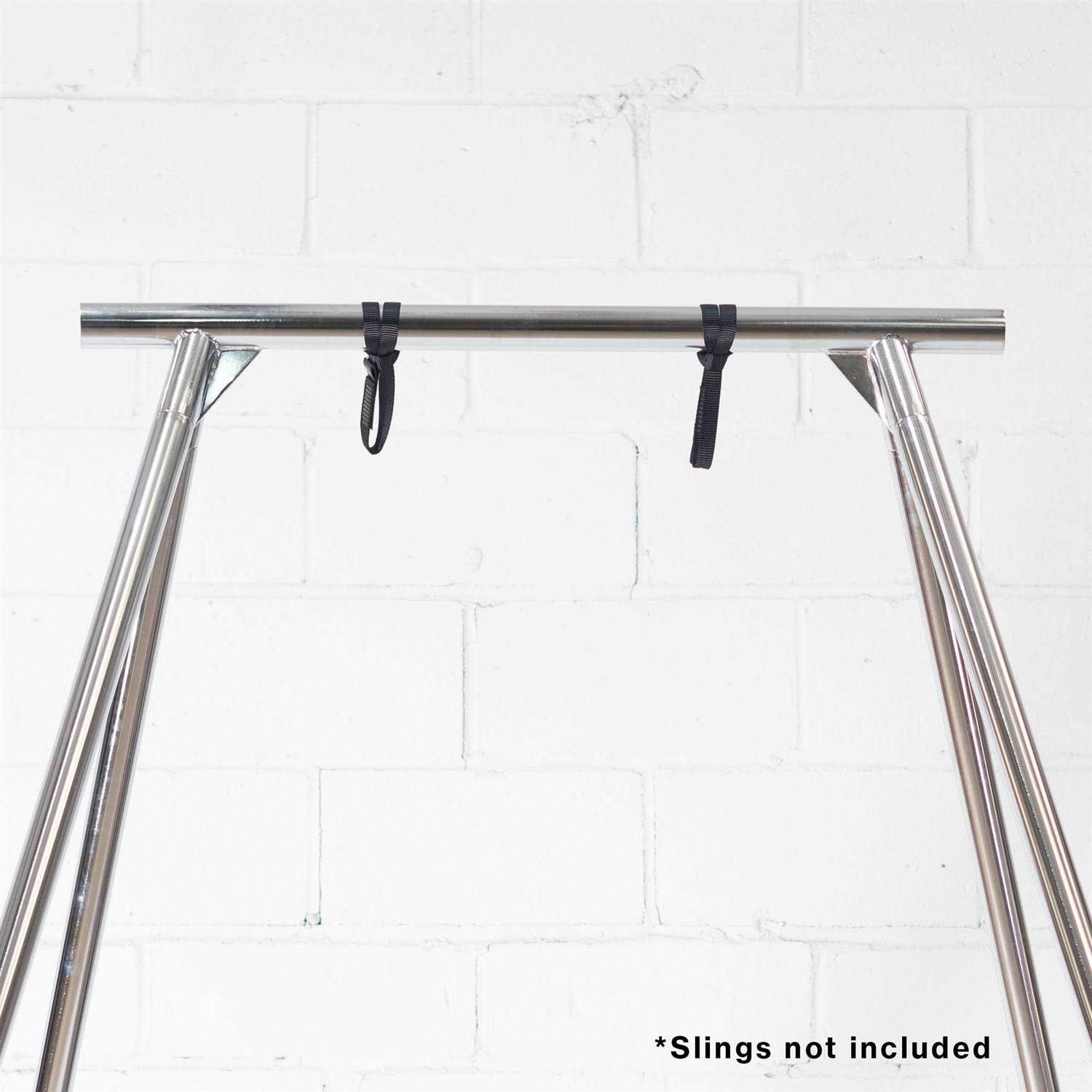Fully tested and certified in the UK. This is the perfect indoor A-frame for setting up your aerial yoga hammocks or doing some aerial conditioning! Note: The chrome on this rig is not weather-resistant and is not designed to be left outdoors.