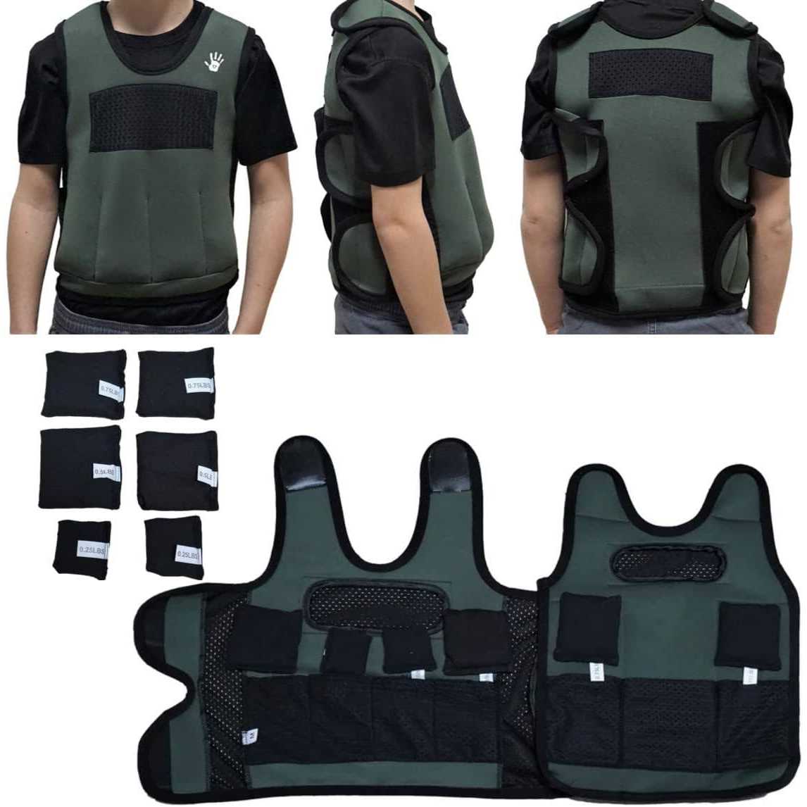About this item Calming Effect: This weighted vest is specially designed for children with problems like ADHD, autism, etc. that cause issues like anxiety, stress, and other overwhelming emotions. The compression vest has a therapeutic effect on the child, keeping them calm, relaxed, and focused. Quality and Comfort: Made using high-quality material, this weight vest is going to be your child’s long-term partner. The breathable material of the weighted clothing has a soft and smooth feel to the touch that keeps your child comfortable as long as they wear it. Weighted Design: These medium-sized weighted vests are designed with 6 removable weights of 3 pounds. The adjustable weighted vest has 6 pockets that are designed to slide the weight in or out conveniently so that you can make the adjustments as per the child’s need. All Time Perfect: Serving as ADHD tools these vests are the ideal choice for all times like at home, in class, on long rides, in therapeutic sessions, etc. The specialized design of the adjustable weight vest wraps comfortably from over the shoulders and around the midsection, keeping your child cool while staying relaxed with natural movement. Great for therapy, at the clinic, PT and OT therapy tools. Ideal Size: This 15.5 x 13 inches weighted vest for kids has a wide design that fits almost all children from 4 to 10 years of age.