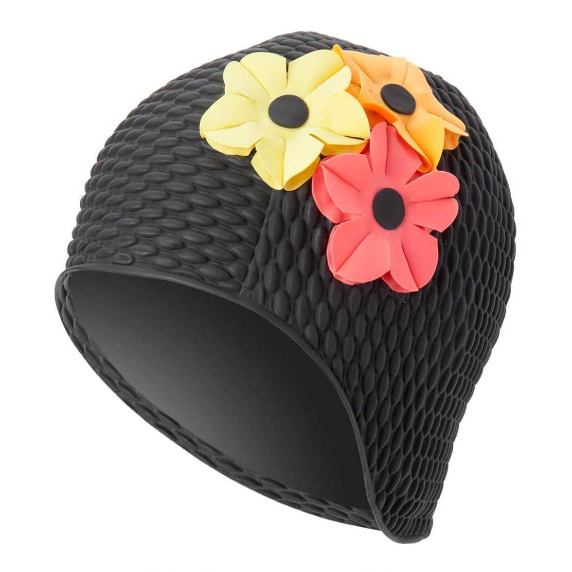 Sporti Floral Bubble Swim Cap, Black/Ivory, Size: OS