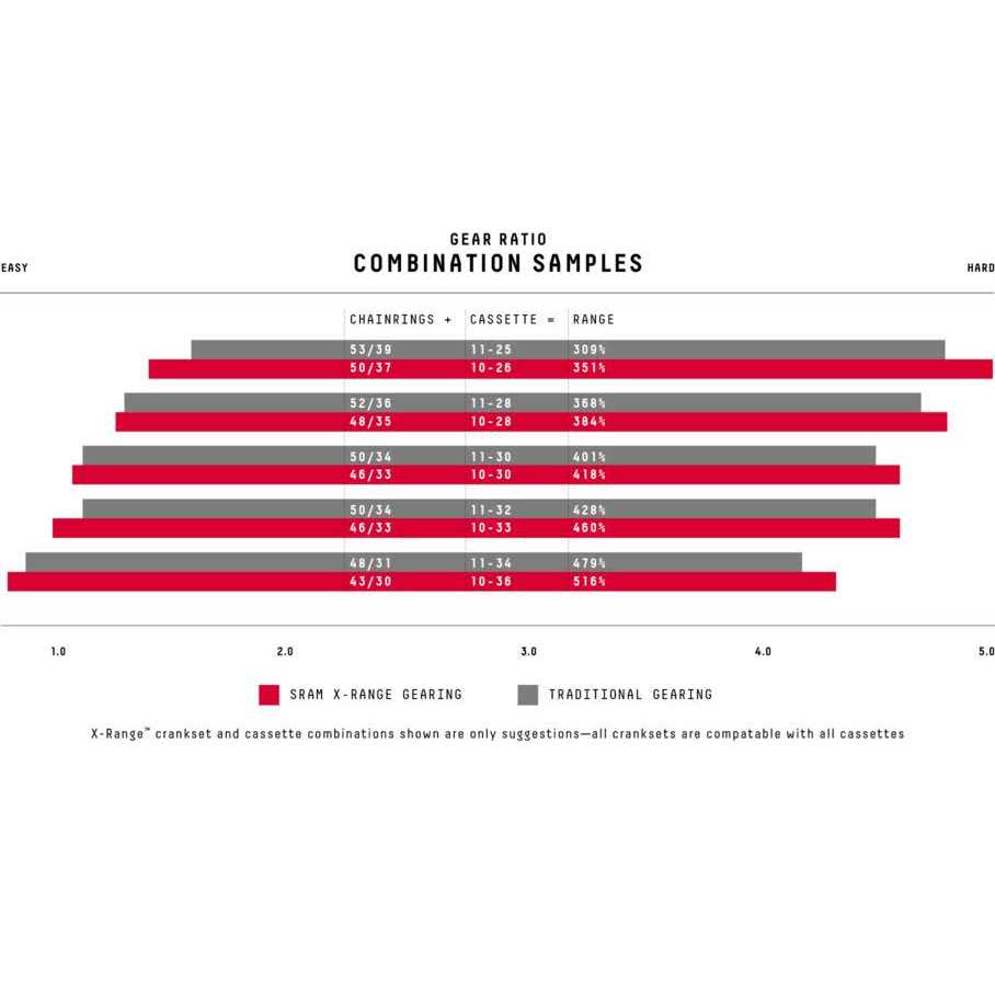 The SRAM RED 1 AXS Crankset features exceptional 1x drivetrain design. It provides the simplicity and tighter gearing range that is well-suited for road racing and riding in flatter terrain where a wide range would go unused. The crankset is designed specifically for electronic shifting and can be upgraded to a power meter.Triathlon. Time Trial. Cyclocross. Some disciplines are made for 1x. And while thq X-Range 2x set up has integrated much of the simplicity of a 1x system there are still times when a single ring is best. The SRAM RED 1 crankset offers the most demanding racers the right mix of featuresaerodynamics durability and simplicity.