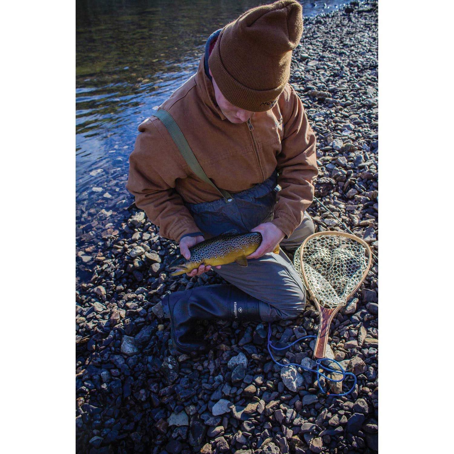 Stansport’s Stocking-Foot Chest Waders features a waterproof heavy-gauge PVC design, elastic chest line, large inside chest pocket for small items and attached elastic suspenders. This fully cut design allows for ease of movement. The seams are strong, factory heat sealed. This wader must be worn with wader shoes or tennis shoes-not included. Colour: tan. Size: small.