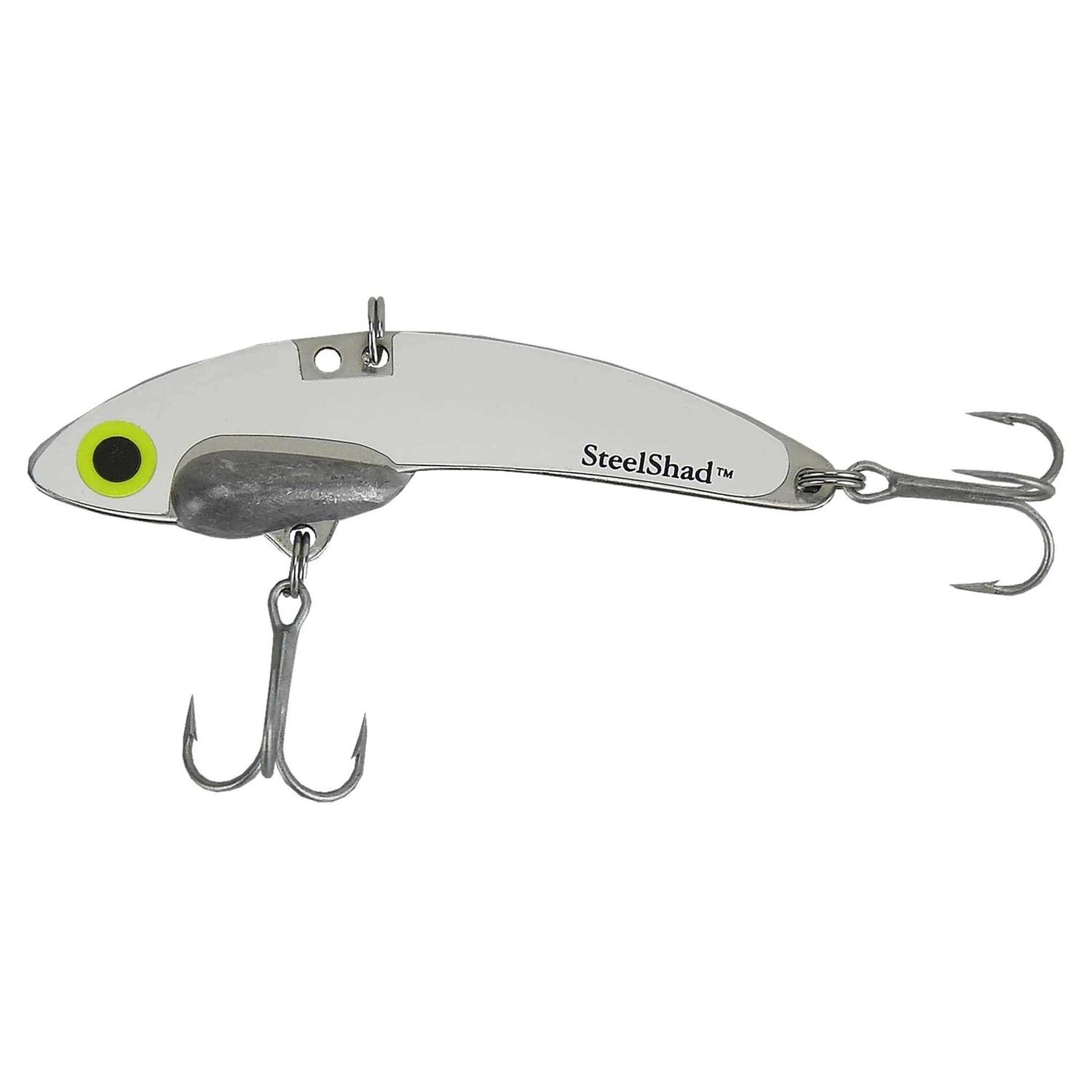 The Original lures arrive equipped with a molded lead weight, a split ring and feature two #6 VMC PermaSteel coated treble hooks – for both fresh and saltwater fishing. From the bank, from the boat- Fishing SteelShad is an experience like nothing else out there. SteelShad can be cranked, jigged, and trolled. Just as you would throw a lipless crankbait, cast it out and straight retrieve it back just fast enough to feel the vibrations. With a typical sink rate of 1 foot per second these presentations can help with suspended fish. Drop it vertically to desire depth and lift rod tip 12-18 inches repeatedly to feel the spoon like flutter on the fall while jigging. For trolling SteelShad will run 1 5 feet deep without extra weight depending on speed. The weight placement allows the nose of the lure to cut the water while changing its center of gravity to create constant, stable throbbing vibrations. Paired with their naturally curvy, realistic baitfish design, SteelShad Lures flashy, vivid enticing patterns are known to generate more strikes. SteelShads wild action and tremendous throbbing vibrations produce the illusion of erratic baitfish with minimal effort.