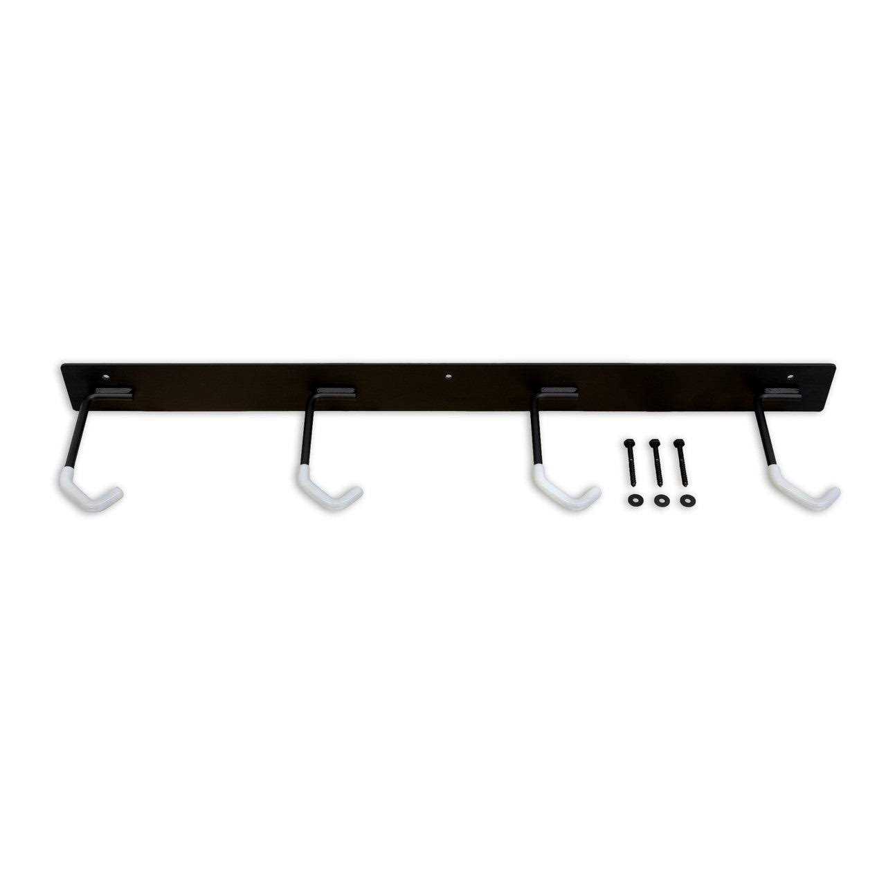ORGANIZED BIKE STORAGE: Indoor wall storage rack holds up to 4 bicycles for easy-to-access storage. INDUSTRIAL STEEL: Made from solid steel and welded together as a solid, single rack to hold your bikes. Durable rust-resistant powder coating supports up to 200 pounds. PROTECTIVE HOOKS: Rubber-coated hooks gently hold bikes by the wheel with a secure grip. EASY TO INSTALL: Quality mounting hardware included. Fits standard 16″ wall stud spacing. EXCLUSIVE PATENT PENDING DESIGN: Proudly engineered by StoreYourBoard in Troy, Virginia.