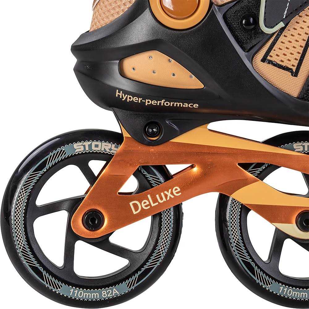 The Story Peak inline roller skates are for everyone who loves racing, longer rides and high speeds. They are suitable for both beginners and professional skaters, who want fast paced rides on the streets. Roller skates for long trips and race require high stability and large wheels. That’s why Story Peak has 110 mm size wheels. And to make them even faster and better respond to your movements, the wheels are of the hardness 82 A with ABEC-7 ball bearings. Story Peak has an aluminum blade. This strengthens both the roller skate as a whole, but also makes your rides significantly better, as it will be easier to achieve speeds. The material for the skate boot is a combination of different materials. For the outer part of the boot, there is a layer of hard plastic, which strengthens the boot and supports your foot. In addition, textiles and soft foam have been used. These provide high comfort and make your rides extremely comfortable – even after several hours of use.