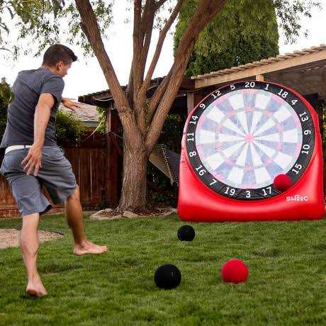 Yard games for kids and family is the giant velcro inflating dart game. Play outdoor in the backyard, campground, picnic, park, weddings, garage, or patio. Inflate big balls in seconds for super active fun things for youth and teens to do. Life-sized game board for parties, weddings, and other outdoor activities. Gigantic version of older dart games is the perfect kids soccer game. Blow up in the backyards of houses and you’re ready to play. From men to teenagers and children, all ages will enjoy the inflatable soccer target. Great gift for teen man or any age. These self-sticking dartboards are the perfect inflated sporting toy for your next outdoor event. Just aim and start kicking. The inflatable dartboard standing over 6ft is a giant challenge for gaming. Play with friends at the BBQ or at teenage camp. Outdoor games like kick darts game inflatable are great for yards and children’s entertainment. This kick darts inflatable game is stuff child’s dreams are made of. Play these sets out in the field, in the backyard, or indoor. Great kid sports activities for the beach, day party, or camping. Families, boys, and girls will all love. Choosing the best outdoor game for family can be difficult. But if you are searching for the best lawn games and yard games for kids, this yard darts is sure to deliver both family fun and outdoor fun. Take the inflatable target challenge by launching the large kickball at the giant dartboard backyard soccer game. The perfect blend of kickball games, outdoor target games, and dart game for kids. Kick the ball at the humongous velcro dartboard in this version of yard darts. The ultimate kid-friendly big inflatable activity is the perfect game for kids ages 4-8 and 8-12. The inflatable dartboard game is the top-rated kids outdoor soccer game. Play kick darts the XL inflatable dartboard toy that is taking over your house. Play Day Kick Darts is a great day. Get this giant yard game.