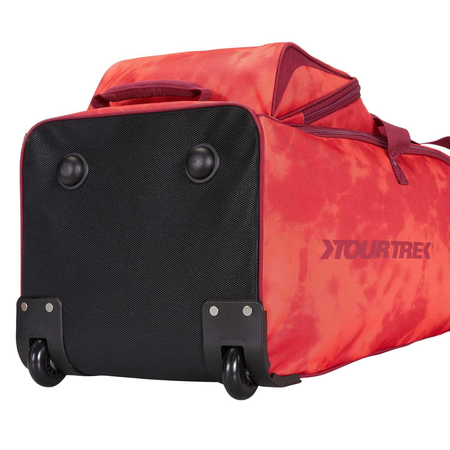 Designed to fit most stand and cart golf bags, the TourTrek TC PRO Travel Cover features 360° padding to protect club heads, full-length horseshoe zippers for easy loading, and top handle/duffle straps for easy lifting. In addition, the durable base has in-line wheels for stability and maneuverability. Interior pockets, oversized external shoe bag and an integrated ID card holder provide additional storage. FEATURES: Soft side travel cover 360° padding protects club heads Dual, full length horseshoe zippers for easy loading Top handle and duffle straps for easy lifting 2 interior pockets for additional storage Oversized exterior shoe bag Durable base and in-line wheels for stability and maneuverability Lockable zippers Integrated ID card holder Central internal strap secures golf bag Designed to fit most stand and cart golf bags Dimensions: 14” L x 14” W x 52” H Weight: 6.6 lbs.