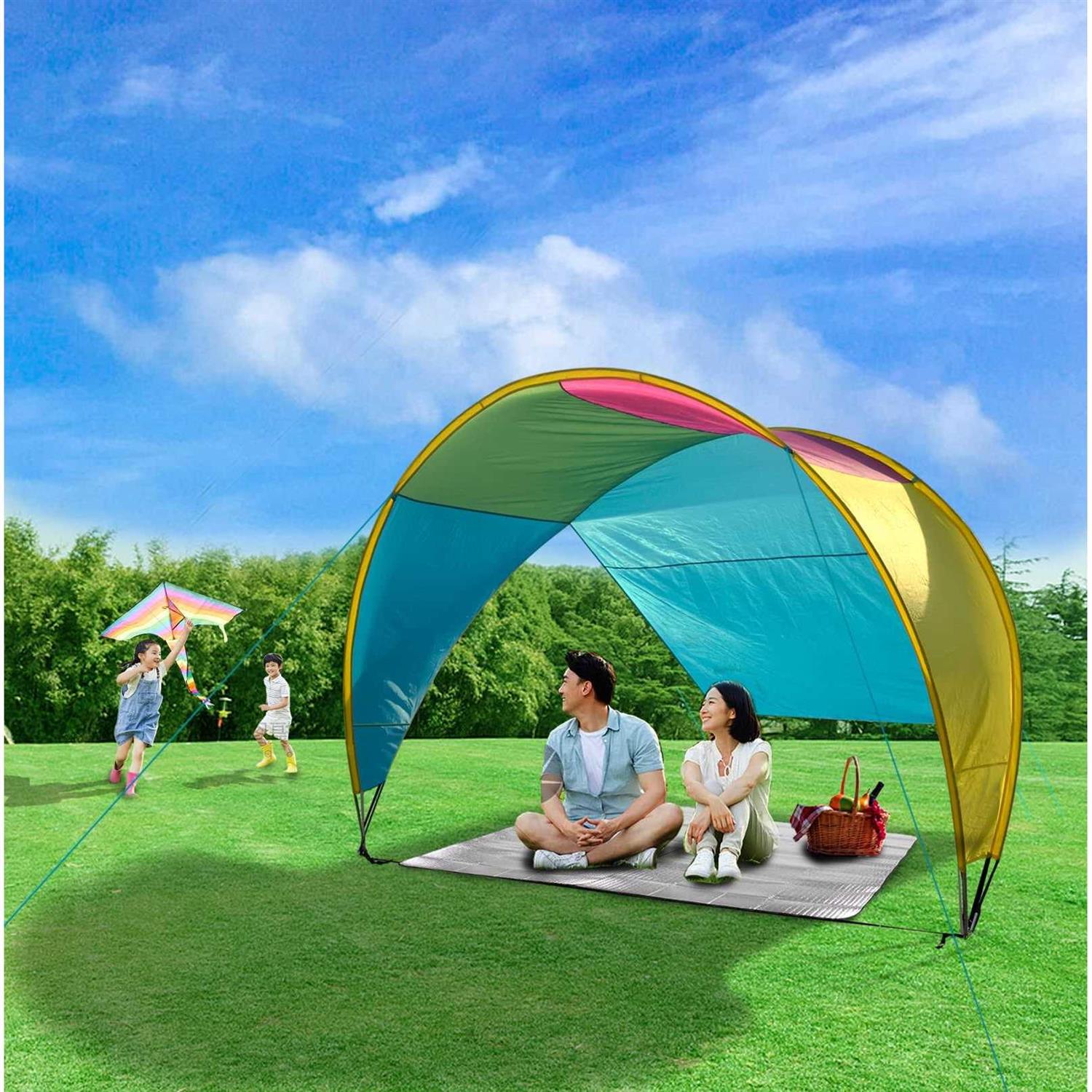 Patented Design Beach Tent Sun Shelter Rainbow Colorful Suncover, Outdoor Shade for Camping Trips, Backyard Fun, Fishing or Picnics-Sand, Grass or
