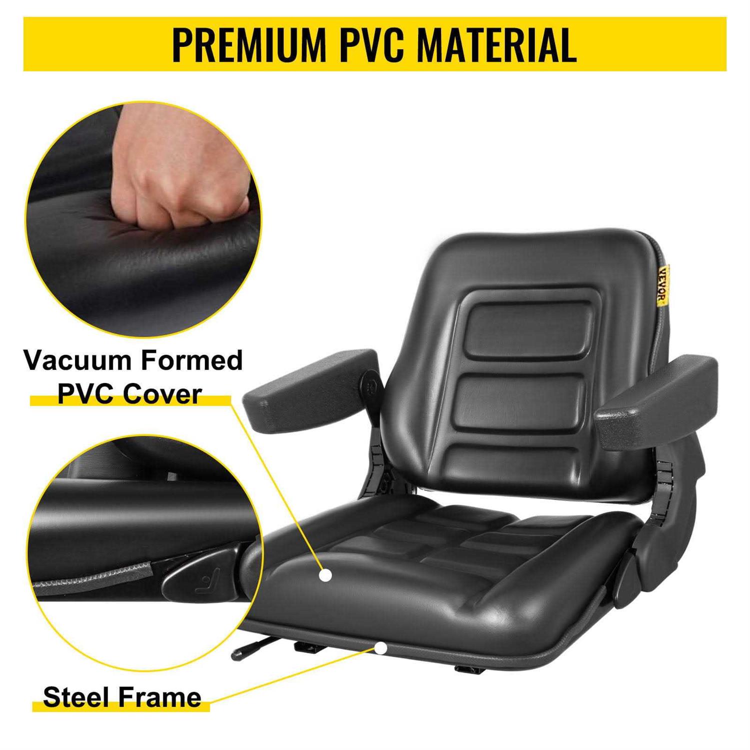 VEVOR Universal Forklift Seat Black PVC Tractor Seat 6 Adjustable Mower Seat Foldable Seat Including Armrests&Seat