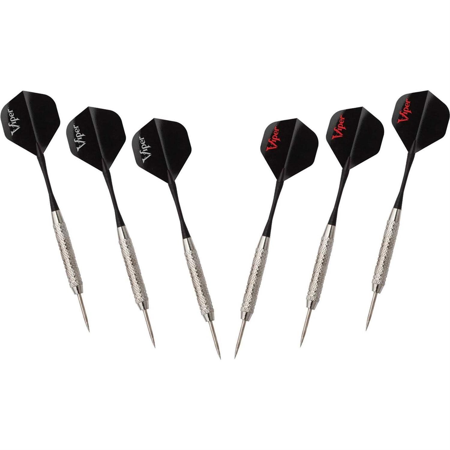 Everything you need to optimise your darting experience is now available in a convenient, comprehensive bundle. Each Viper Stadium bundled set contains a dartboard cabinet, a Viper Shot King sisal/bristle staple-free bullseye dartboard, 2 complete sets of steel tip darts (6 total), a dry erase scoreboard, dry erase marker and mounting hardware. The dartboard cabinet features a black felt lining and is fitted with 2 compact door stoppers, which helps protect the dartboard and cabinet from a door slamming shut. Magnets keep the cabinet closed between games. The quality construction provides lasting durability and complements the look of any room. Open dimensions: 110cm L x 50cm W x 7.6cm D; closed dimensions: 50cm L x 50cm W x 7.6cm D. Measuring 46cm in diameter and 3.8cm D, which is official tournament size, the Viper Shot King dartboard features a staple-free bullseye which greatly reduces bounce outs. It’s constructed from self-healing sisal/bristle fibres compressed together, providing unsurpassed durability. A movable number ring further extends the dartboard’s life. The steel tip darts are designed with high quality, nickel silver plated barrels, which offer exceptional balance and styling in a slim profile. Strategically placed knurling and grooves provide excellent gripping points, enhancing your control. Choose from the Standard, Deluxe, Premium and Elite sets, selecting the bundle that suits your needs. The Standard bundle includes a Viper Edge dart throw/toe line marker. The Deluxe bundle includes a Viper laser throw/toe line marker. The Premium bundle includes a Viper Edge dart throw/toe line marker and a Viper Shadow Buster cabinet mounted display light. The Elite bundle includes a Viper laser throw/toe line marker and a Viper Shadow Buster cabinet mounted display light. COMPONENTS: The Viper Edge dart throw/toe line marker is constructed with high quality printing and heavy duty resin to withstand heavy foot-traffic areas. The Viper laser throw/toe line marker delivers a bright and energy efficient laser beam which allows it to be seen even in intense daylight. The adjustable laser throw/toe line provides a modern alternative to traditional adhesive floor markers. Once the laser is mounted, simply tighten the 2 screws on either side to ensure it stays in place, even if it is bumped. The Viper Shadow Buster cabinet mounted display light illuminates your dartboard, enhancing your visibility and transforming your game room into a true centrepiece. It features 3 adjustable bright and energy efficient LED light pods, delivering a crisp, clear view at any distance.
